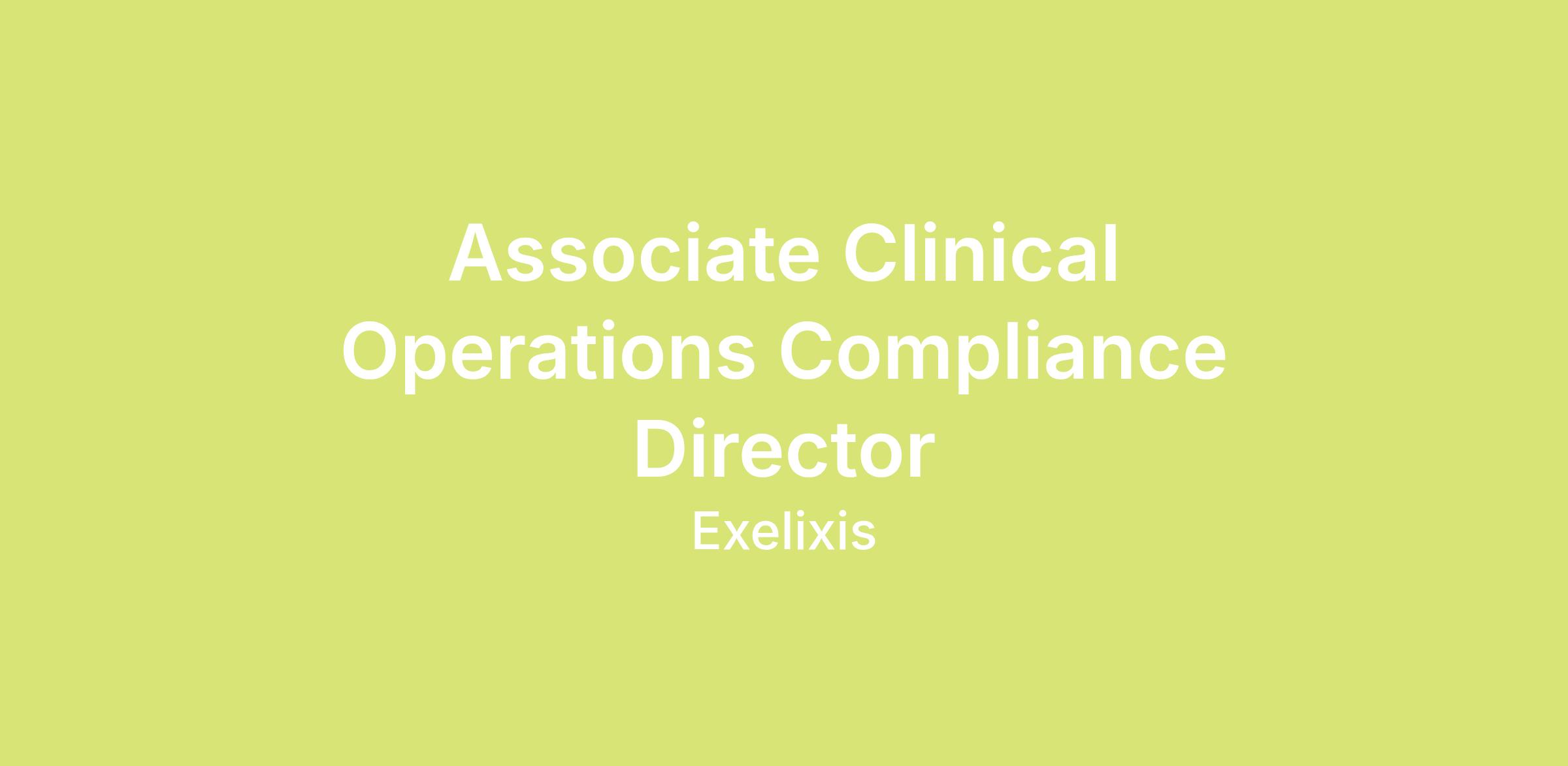 The Associate Clinical Operations Compliance Director will support clinical research activities in accordance with ICH GCP, relevant international and local regulations, requirements and guidelines, as well as Exelixis written standards. Supports the focus on risk management, issue management, vendor oversight and site and data monitoring. The Associate Clinical Operations Compliance Director is a key partner with our Quality Assurance team and other functional groups (including Clinical Development, Data Management, etc.) and will assist in supporting inspection readiness activities, driving cross-study consistency in study execution and compliance with governing functional procedures and processes, and escalation of identified operational issues within development and of identified quality issues to QA.