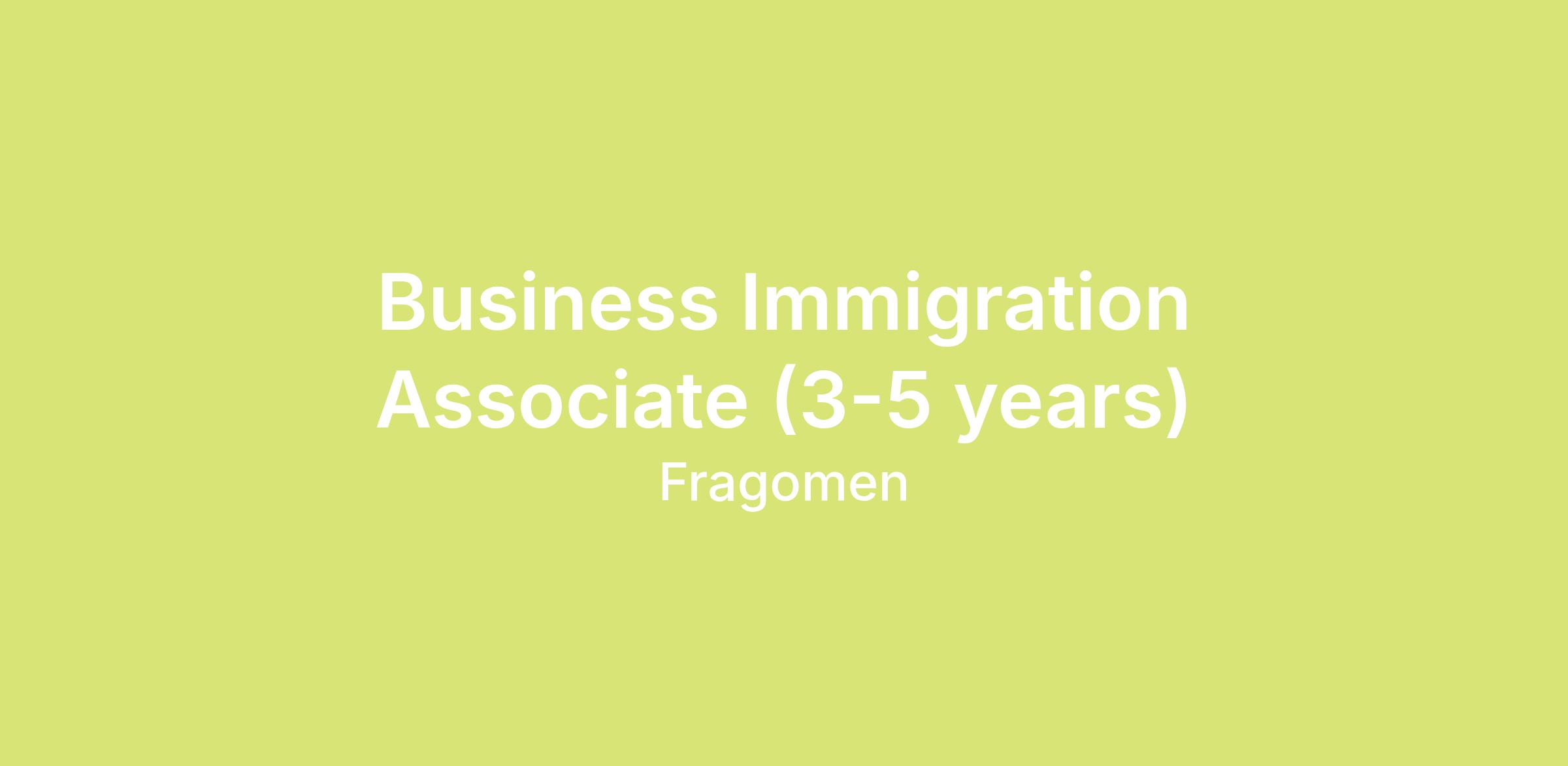 About the Role: A career as a Business Immigration Associate at Fragomen gives you the opportunity to work with a smart, motivated, and diverse peer group. Our exclusive focus on immigration means you will practice in an exciting, dynamic, and challenging environment with talented individuals who share your passion for immigration. Working in a collegial, team-oriented environment, Fragomen Associates learn from the industry's leading experts. Our unwavering dedication to excellence and industry best practices is bolstered by cutting-edge technological innovation, enhancing the experience for both our clients and our exceptional staff.