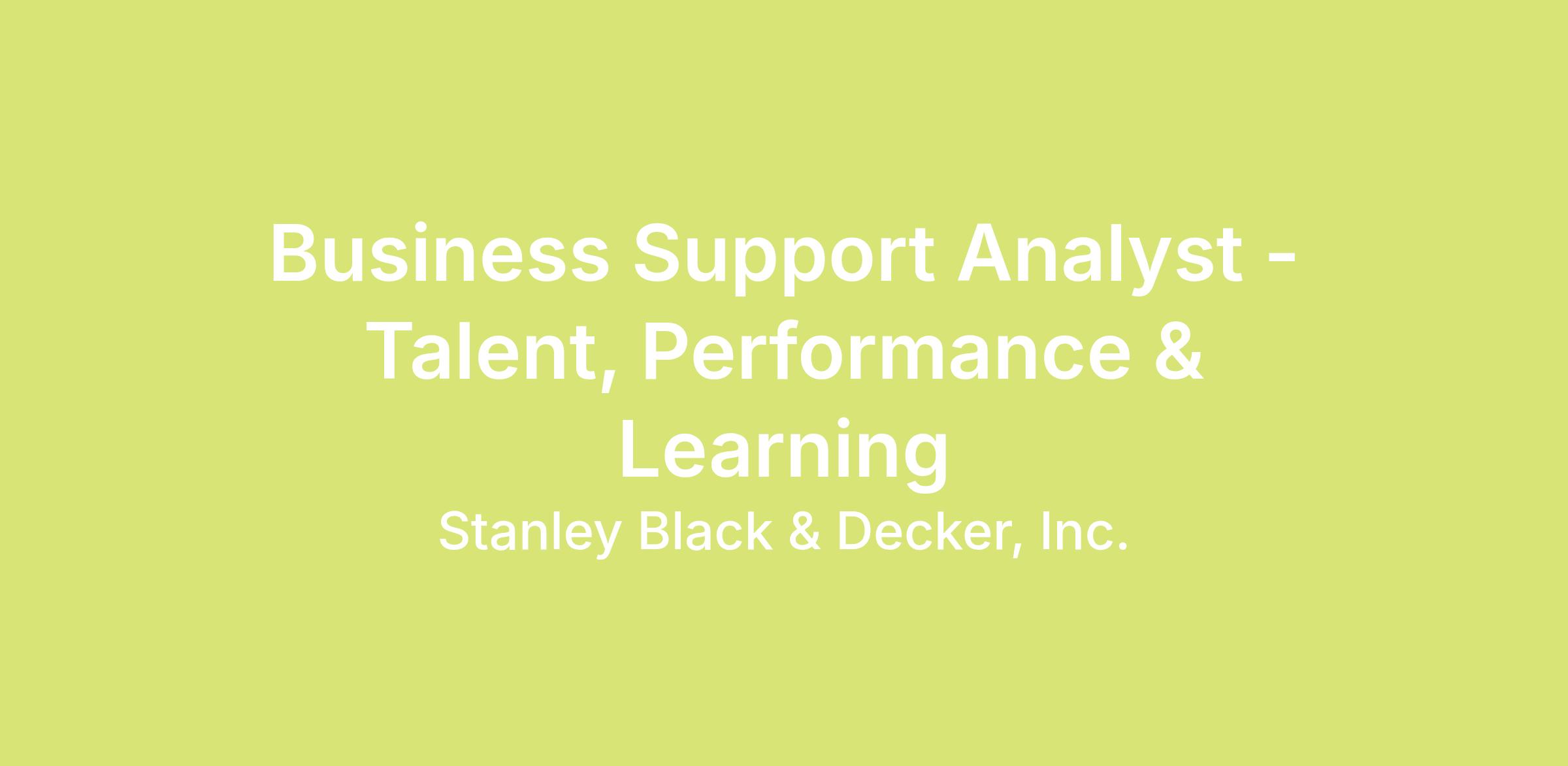 Business Support Analyst – Talent, Performance & Learning - Remote