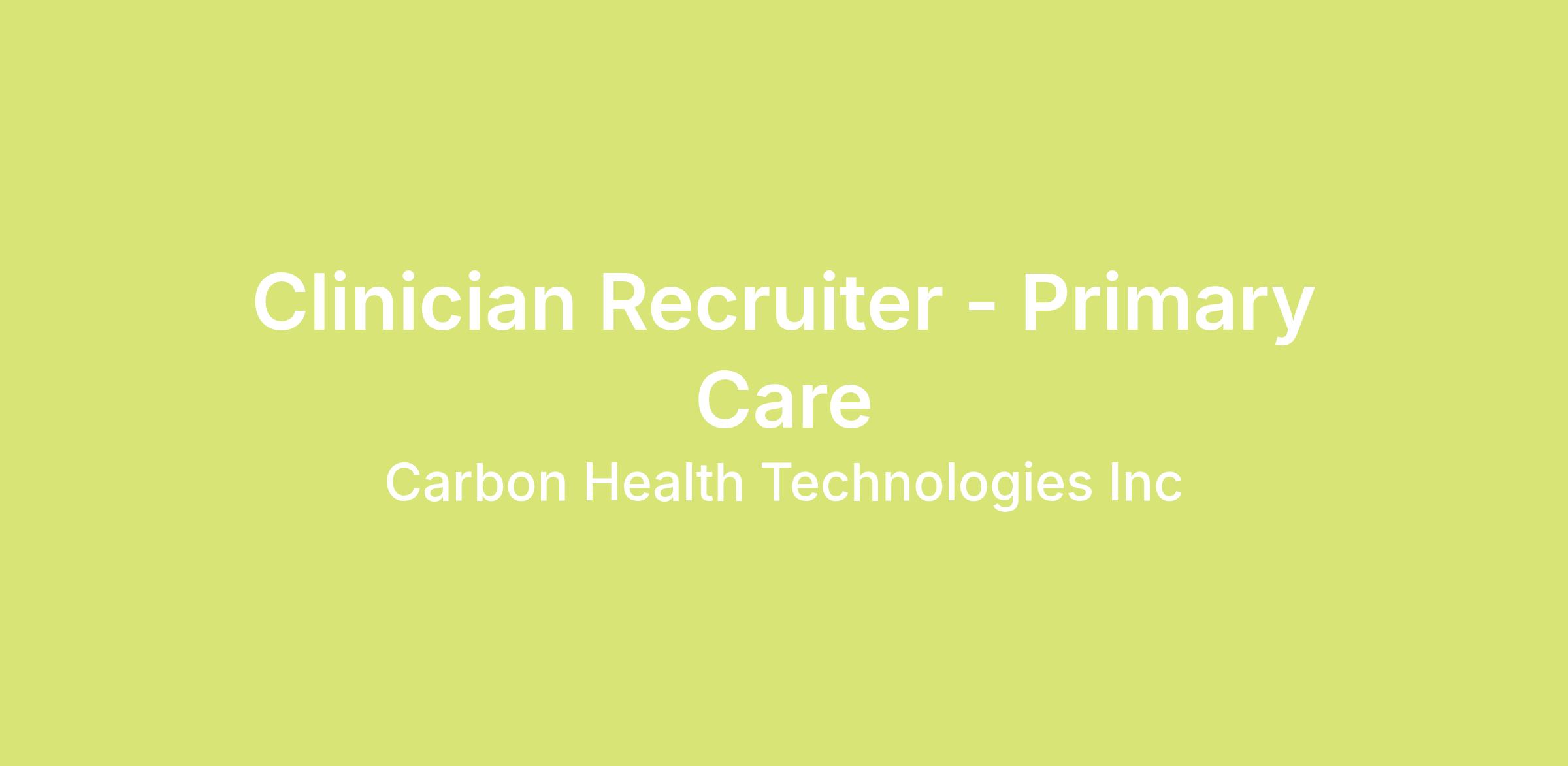 At Carbon Health, we pride ourselves on offering a team-centric and dynamic working atmosphere. You will be empowered to successfully perform your role while working on innovative projects. We are looking for an exceptional Clinician Recruiter to help build and scale our Talent function. You’ll recruit physicians, advanced practice clinicians, and clinical leaders for primary care and clinical research nationwide, playing a key role in delivering a high-quality, relationship-driven hiring experience.