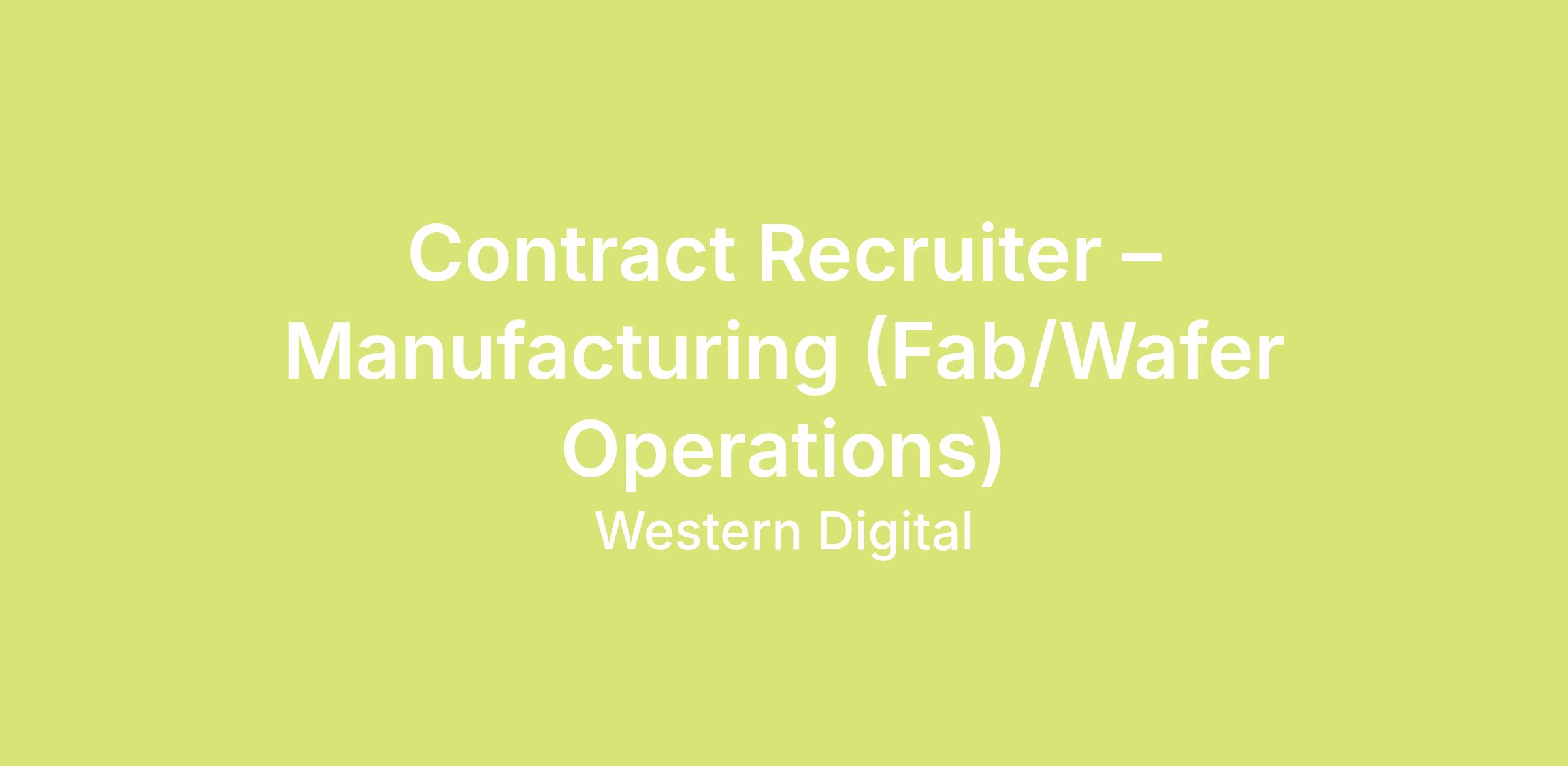 We are seeking an experienced Contract Recruiter to support high-volume hiring across our Fab and Wafer Manufacturing operations, with a focus on technician, equipment maintenance, and facilities roles. This individual will partner closely with local manufacturing leaders to understand critical workforce needs and execute targeted, high-impact sourcing and recruiting strategies.