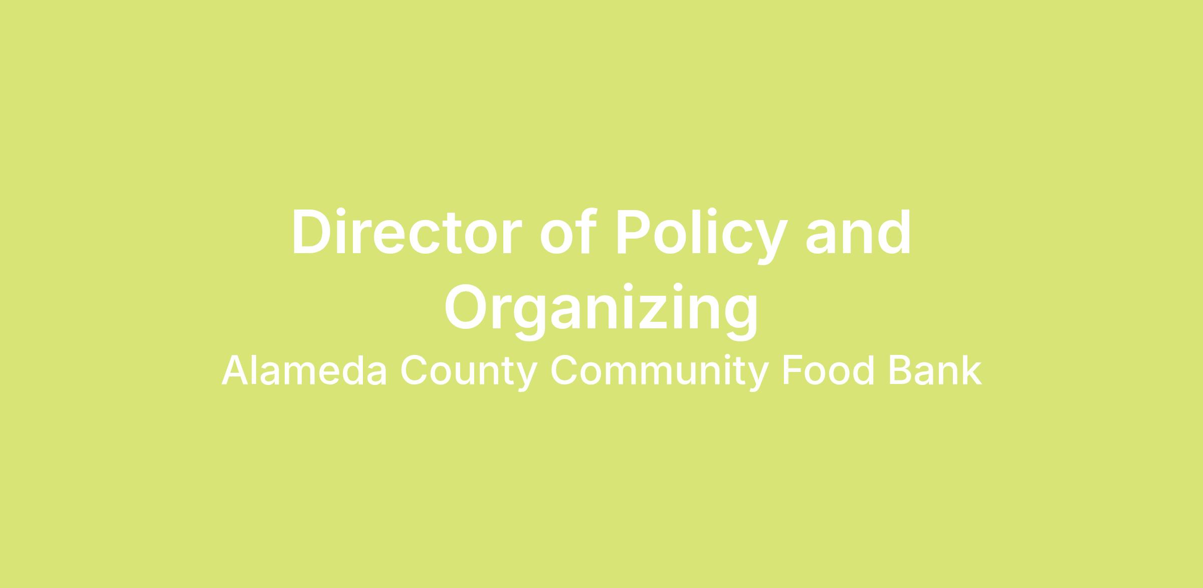 Are you an experienced Policy Director looking to make a difference in the lives of 330,000 Alameda County residents? Are you passionate about the power of grassroots organizing, and want to apply your political skills to help one of the Bay Area’s top non-profits — and a nationally recognized leader in hunger relief — amplify its impact? If so, Alameda County Community Food Bank may be looking for you as our next Director of Policy and Organizing (DPO).