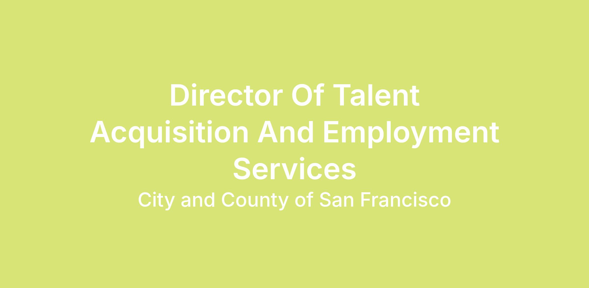 Under general administrative direction from the SFPW Human Resources Director, the Director of Talent Acquisition and Employment Services will develop strategies and work plans, supervise staff, research trends in relevant subject areas to inform and develop future plans, establish standard work, lead projects, and oversee cross-departmental collaboration to the success of different HR teams: Employment Services (HR Operations), Talent Acquisition (Exams)/Classification and Payroll. You will lead an innovative team of HR professionals by providing your expertise on special projects as assigned, many of which require your thoughtful management of sensitive communication with entities such as the City-wide Department of Human Resources, the Civil Service Commission, and other City departments, commissions, and boards on human resources-related matters, as well as compliance with staffing regulations. If you're excited to apply creative and modern approaches to develop solutions and projects to serve the needs of the many communities across San Francisco, you'll be interested in joining our Public Works HR team.