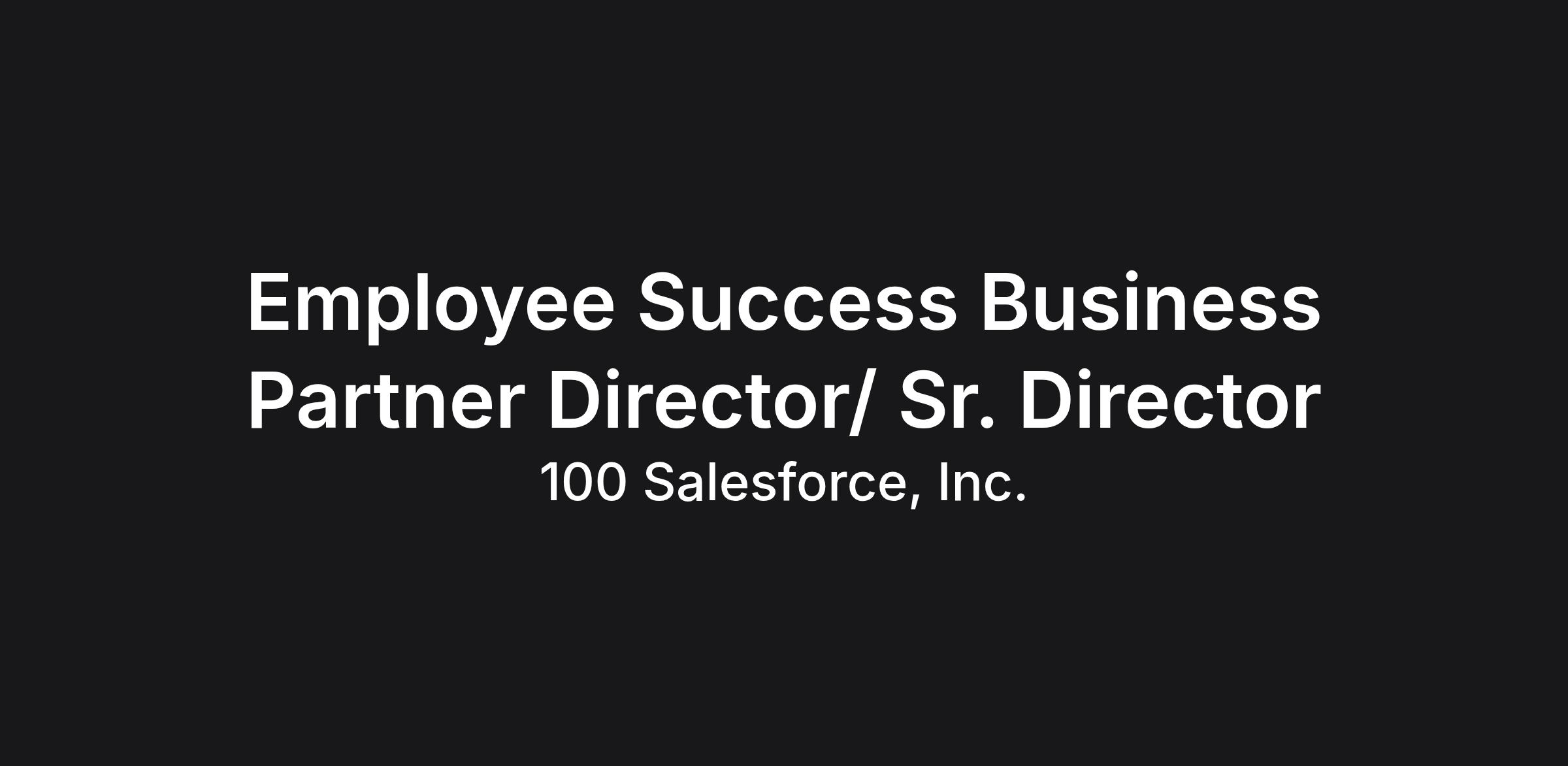 Join our world-class Customer Success Employee Success Business Partner (ESBP) team. This Director-level role supports account-aligned organizations within Salesforce and partners directly with senior Account Success leaders driving long-term vision and strategy for our most high-impact businesses.