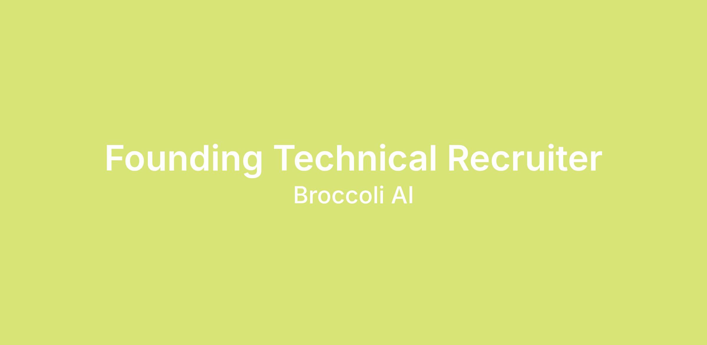 We’re looking for a Founding Technical Recruiter to help build the team behind Broccoli’s next phase of growth. You’ll own full-cycle recruiting for technical and product roles — junior, senior and staff engineers — working closely with founders on both the who and the why behind every hire.