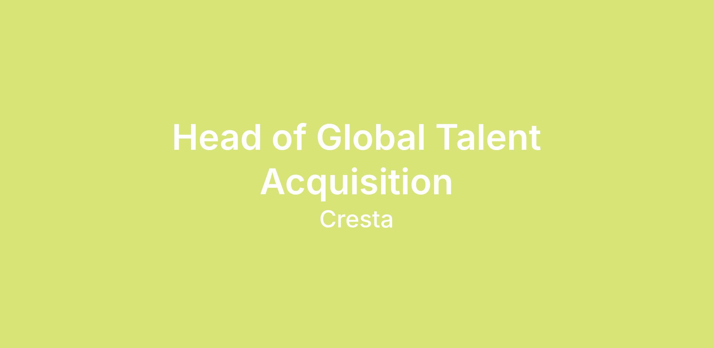 We’re looking for a strategic, credible, and highly execution-oriented Head of Global Talent Acquisition to build and scale Cresta’s global hiring engine. This leader will own talent acquisition strategy and outcomes across Technical, GTM, G&A, Executive, and Early Career hiring, while partnering closely with executive leadership and the Head of People.