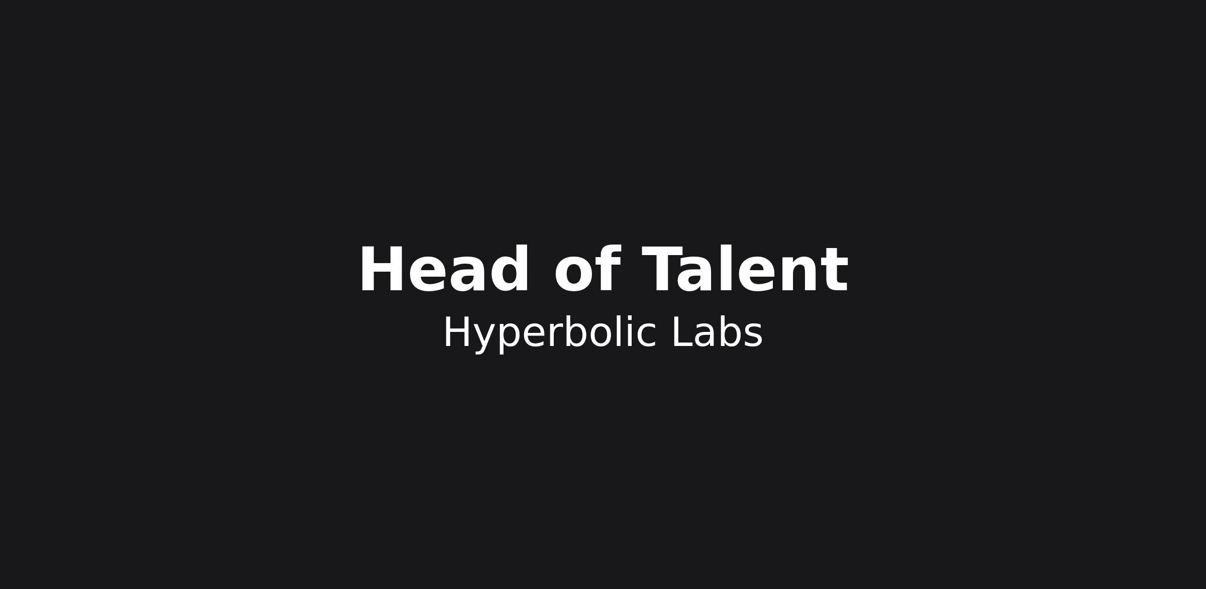 We’re seeking a Head of Talent to build and scale Hyperbolic’s recruiting function as we grow our team and expand our platform. As an early-stage company operating at the intersection of AI infrastructure and distributed compute, our ability to attract and hire exceptional talent is critical to our success. You’ll partner closely with founders and leadership to define hiring strategy, prioritize roles, and build a high-performing, scalable hiring engine.
