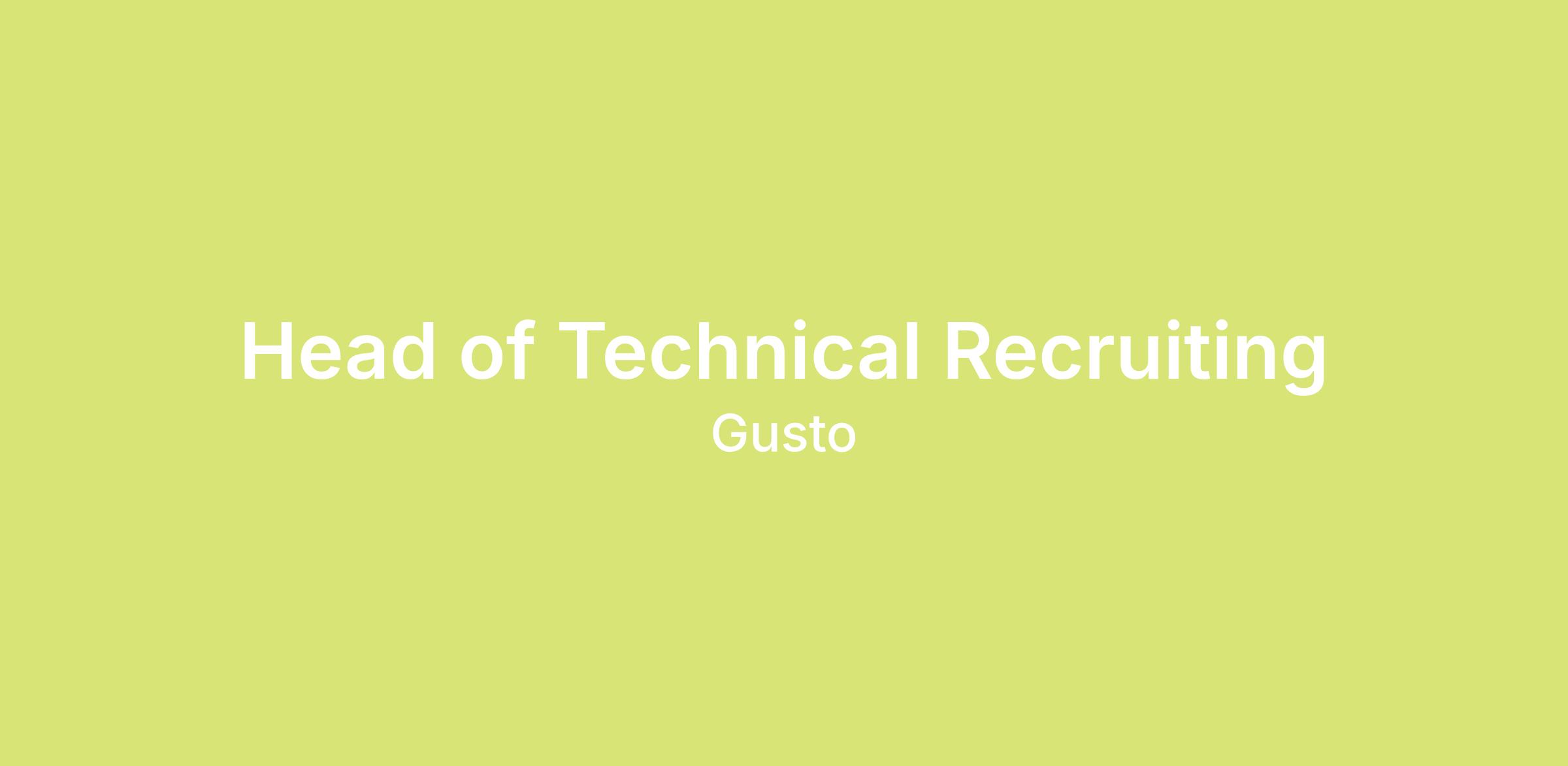 At Gusto, the People team is the foundation of everything we do. As the Head of Technical Recruiting, you will lead a critical engine for Gusto’s growth that supports our world-class Engineering organization, as well as Infrastructure, Data, Security, and AIT. You will be a strategic business partner to our VP+ Engineering leaders, heavily impacting Gusto’s hiring strategy and ability to bring in world-class talent at scale. This is a high-impact leadership role where you will manage a team of 20 (FTEs and contractors), including two direct-report managers.