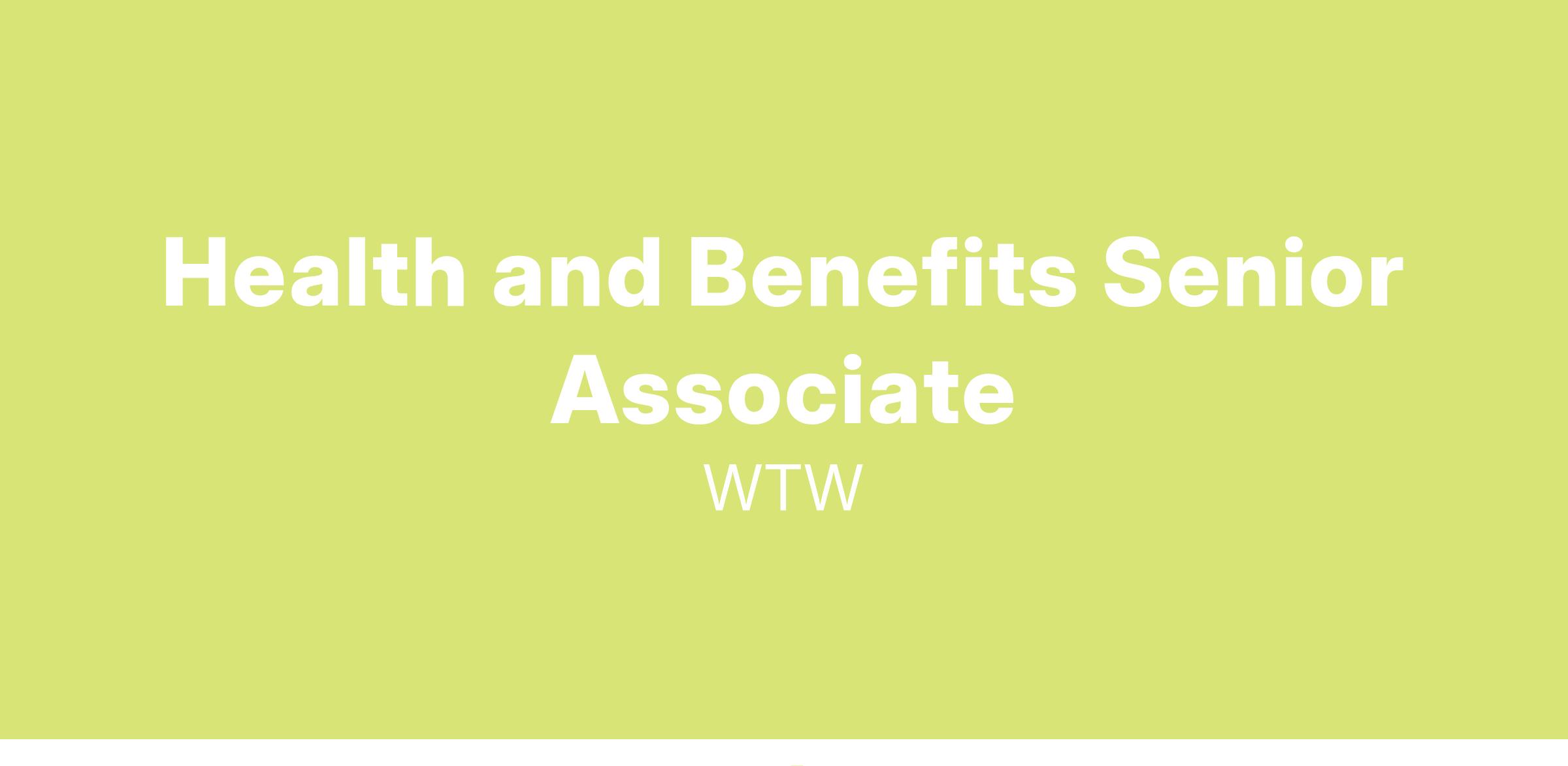 DescriptionAs a Health and Benefits Senior Associate you will contribute to a wide variety of complex projects involving the design, financing and ongoing management of the full spectrum of health and benefit programs. You will serve as the lead project manager on select projects, interface with vendors and key clients internally and externally, create client deliverables, and ensure quality standards are met. You will have the opportunity to significantly grow your health and benefits business acumen as well as your financial, project management and client relationship skills by working on cutting edge projects alongside leaders in the industry.