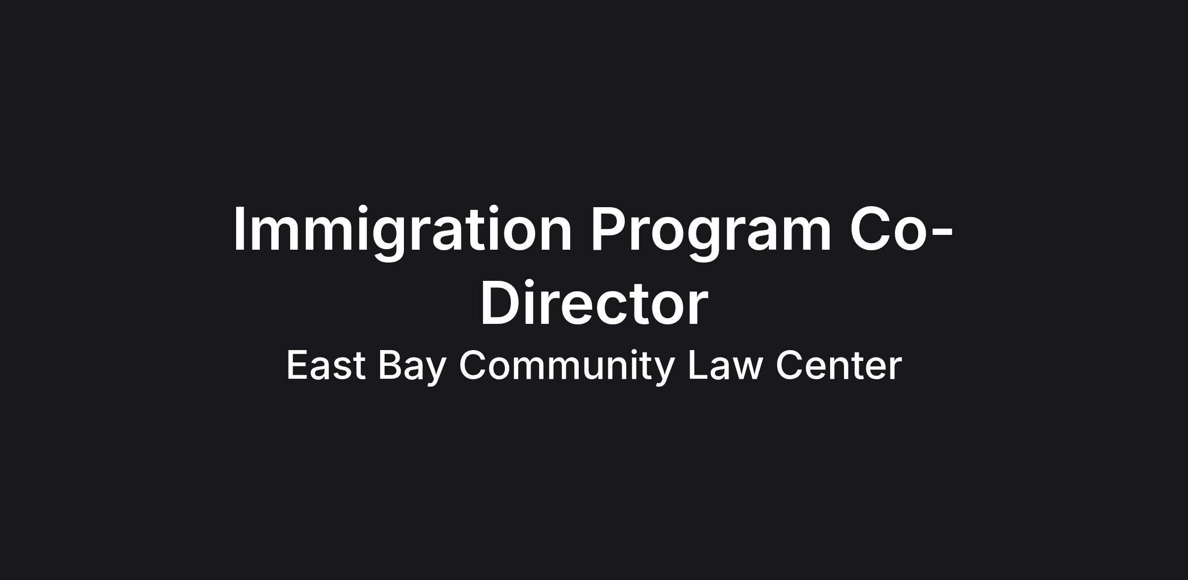 • Co-manage the Immigration Program providing vision, planning, and implementation of the work within the context of EBCLC’s larger racial justice mission;