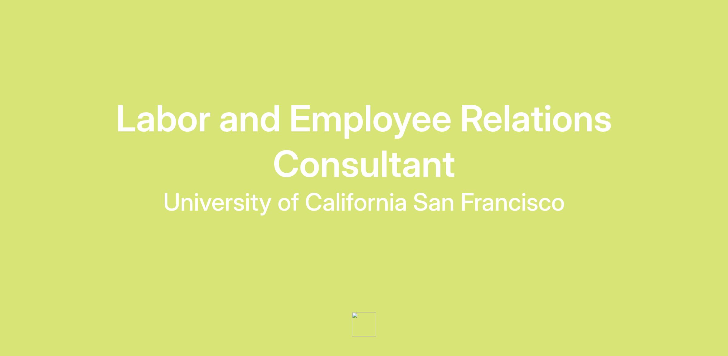 UCSF is preparing to welcome a Labor and Employee Relations Consultant to our department and you are might be what we are looking for! Our ideal candidate would be someone who is dynamic, highly analytical, willing to work hard, willing to learn and gain experience in an exciting field. UCSF is looking for-- An effective relationship builder who develops and establishes rapport and maintains mutually productive relationships and relates well to people from varied backgrounds and in different situations.