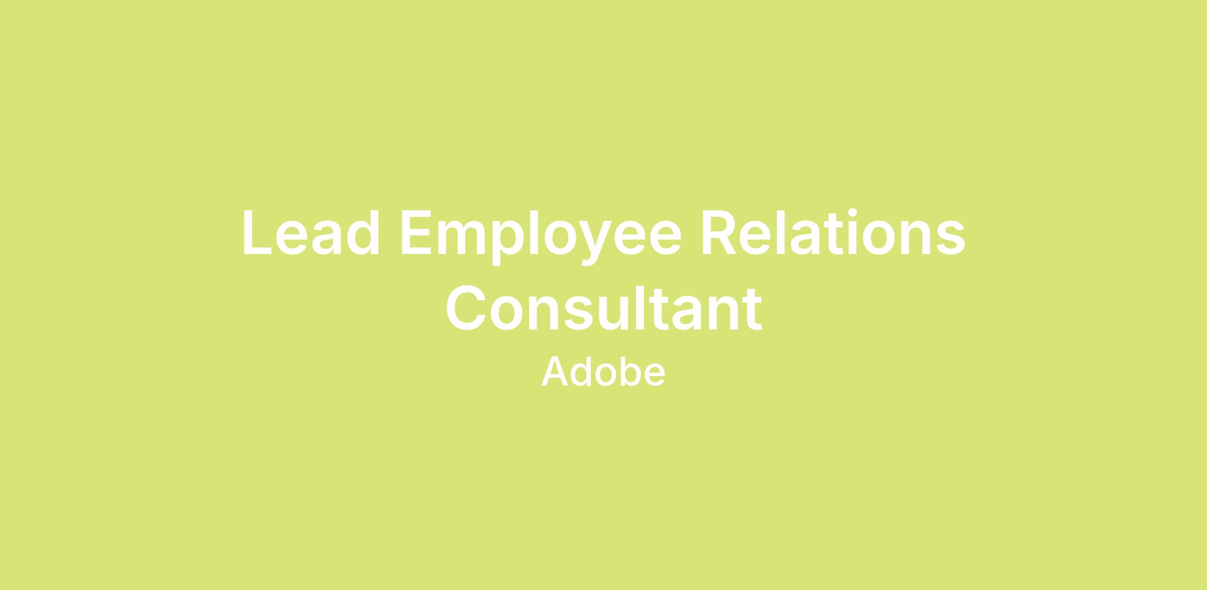 Within the capacity of Lead Employee Relations Consultant (P50), you will operate as a high-level strategic advisor, problem-solver, and thought partner to leaders across Adobe. You will independently navigate the most critical, complex, and high visibility employee relations matters—including sensitive investigations, complex performance issues, conduct matters, conflict resolution, and escalations—while influencing leaders toward business-aligned, ethically grounded decisions!