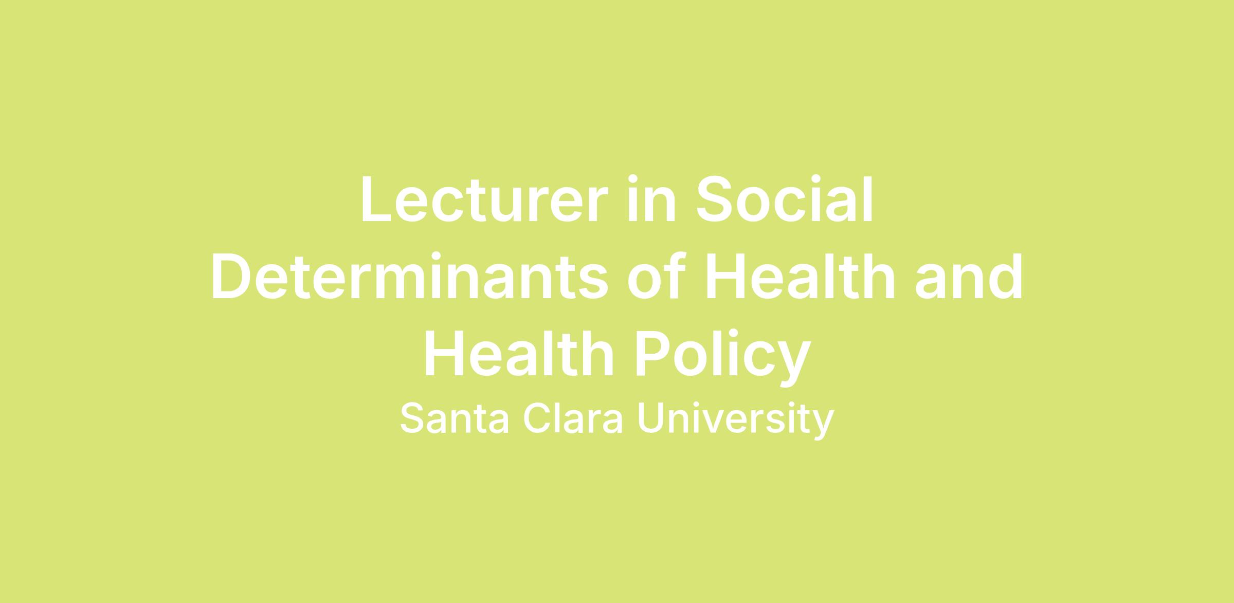 The Department of Public Health at Santa Clara University, a Jesuit Catholic university, invites applications for a Lecturer (2026-2027, non-tenure track). Course load will be a combination of 5 Public Health courses which may include: PHSC 1 - Introduction to Public Health; PHSC 3 - Community Health; PHSC 155 - Health Policy and Advocacy; and PHSC 175 - Qualitative Research Methods. Specific assignments will be made according to the academic qualifications of the individual and programmatic need. The successful candidate will teach the equivalent of 5 courses over the year. Each quarter is 10 weeks long, with an 11th week set for final examinations. This position starts September 1, 2026 and ends August 31, 2027, unless otherwise noted.
