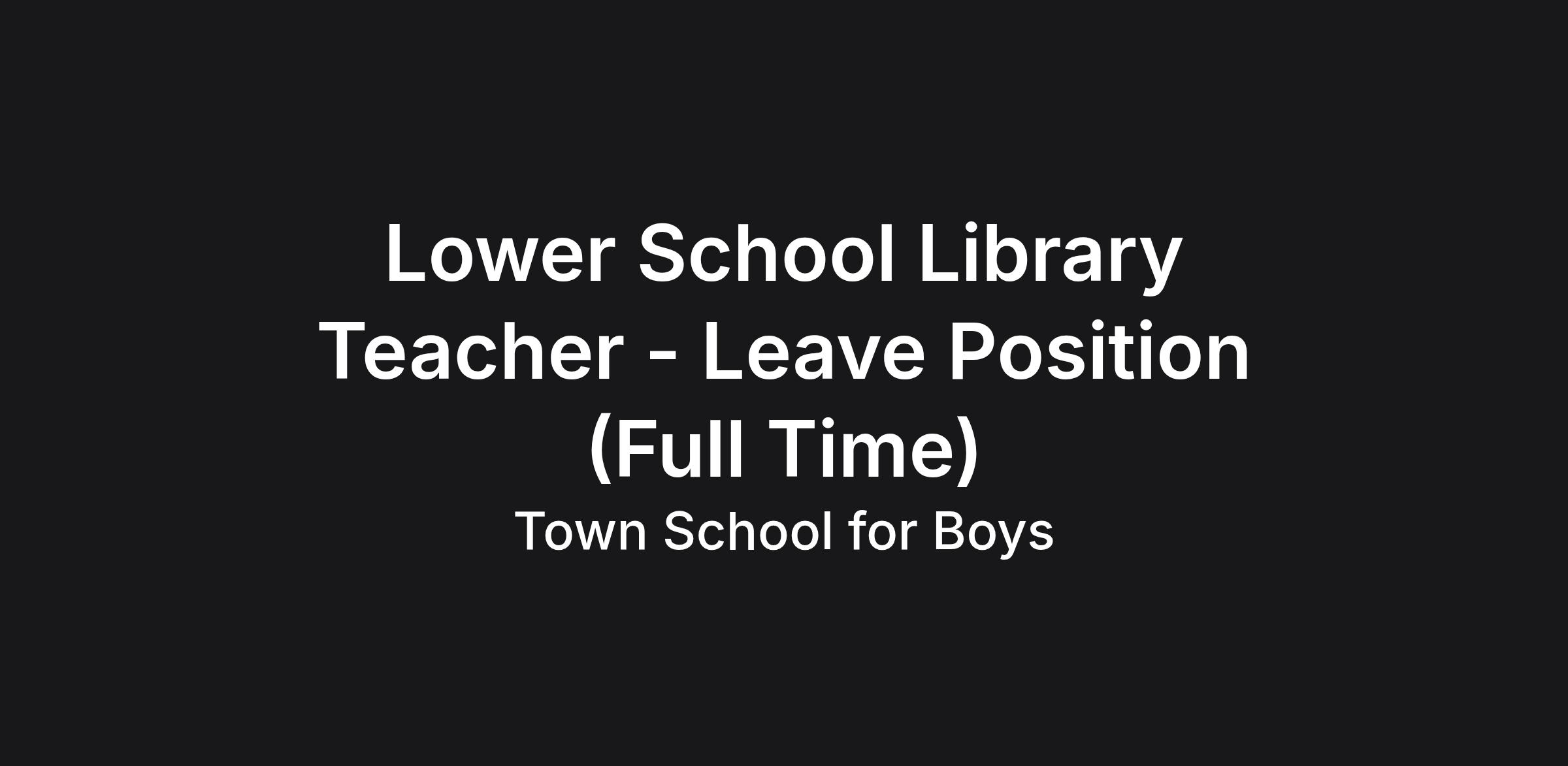 Town School for Boys seeks a full-time Lower School Library Teacher to maintain library operations and K–2 instruction from May 4 to June 3, 2026. This position involves working closely with the Director of Library Services to ensure a seamless end-of-year experience for students and faculty. There are weekly faculty meetings, lunch, and recess duty obligations.