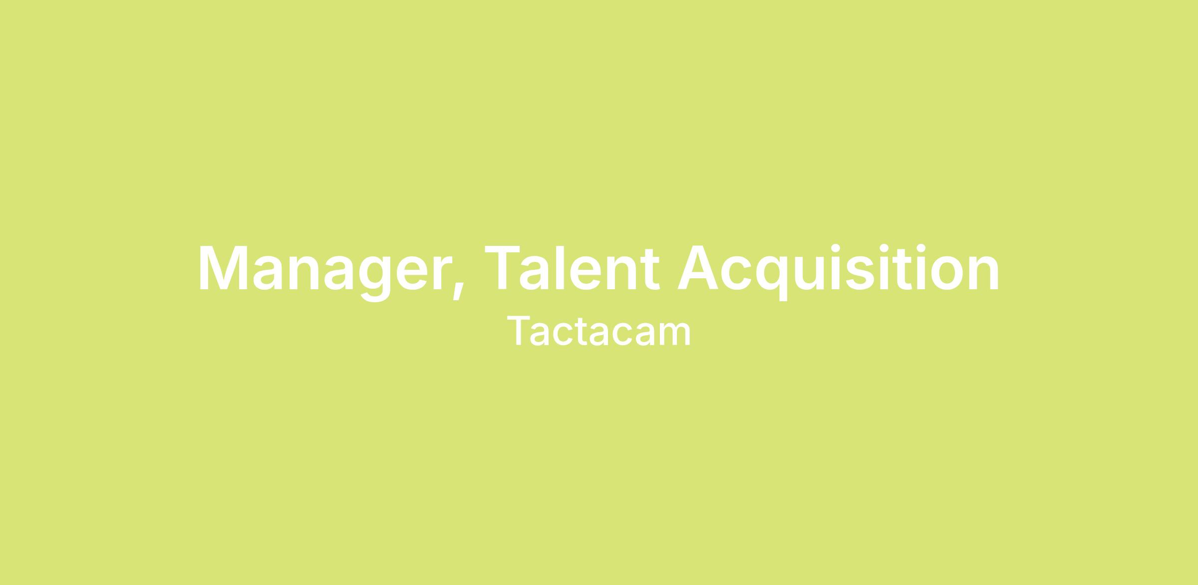 Tactacam is seeking a dynamic leader to join our People & Culture team as the Manager, Talent Acquisition. Reporting directly to the Chief Human Resources Officer, you will serve as a pivotal member of the leadership team and a true talent thought partner to the business. In this strategic role, you will lead our entire recruitment function, balancing high-level strategy with a deep proficiency in driving operational efficiency. You will be instrumental in ensuring our hiring processes scale effectively while maintaining a world-class standard of excellence for both candidates and internal stakeholders. The ideal candidate is a creative leader skilled in building high-performing teams, designing seamless processes, and making high-impact talent decisions that fuel our organization's growth.