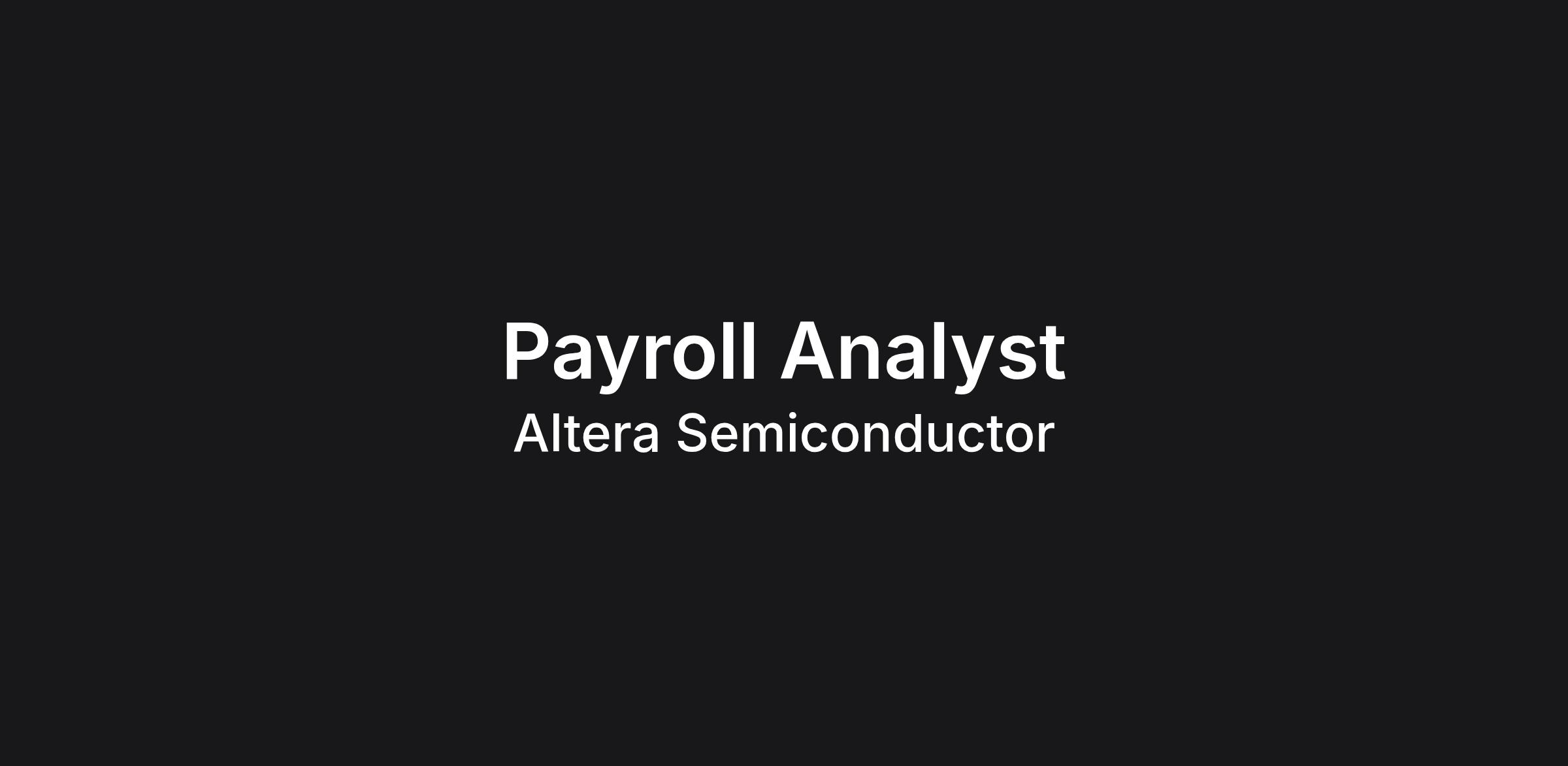 Join Altera as a Payroll Analyst! Under the direction of management, the NA/LatAm Payroll Analyst is responsible for ensuring that accurate payrolls are processed for all employees in a timely and efficient manner. This position will oversee payroll processing by NA/LatAm Payroll Lead, provide customer service to internal and external customers, and ensure compliance with applicable federal and state laws, assist with Workday and Global Payroll Vendor PayrollAdvantage implementation and integration projects as needed.