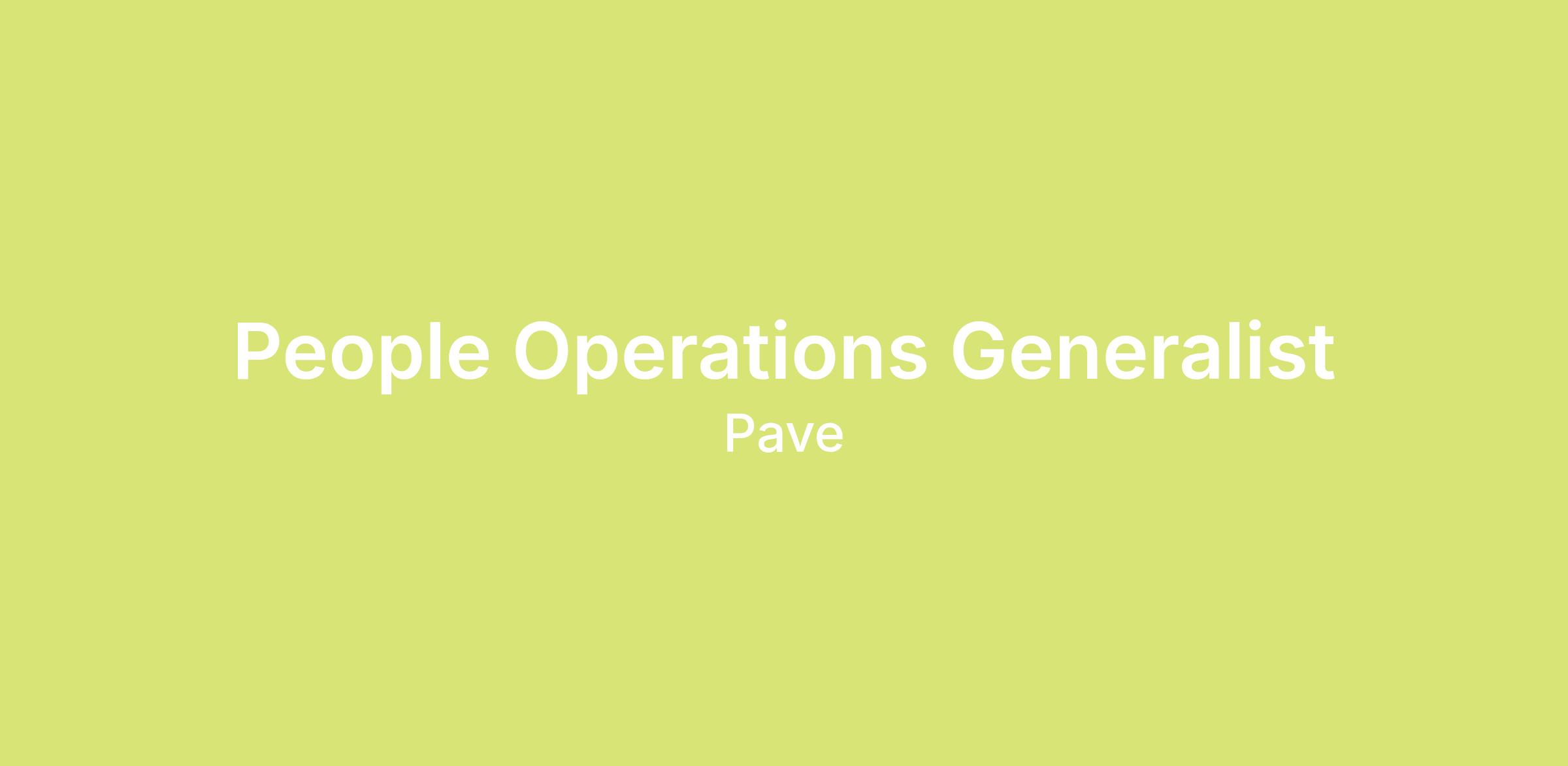 People Operations isn't just about administering programs. It's about building the systems, culture, and experience that will define how Pave scales and how our team shows up every day. You'll have the tools to succeed, autonomy to innovate on process, and direct exposure to high-impact company-building decisions that shape our culture, compensation philosophy, and how we operate as we grow.