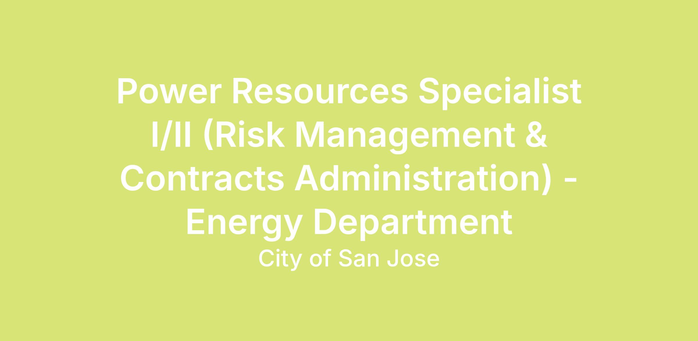 The Energy department is seeking to fill one (1) full-time Power Resources Specialist I/II position to support the Risk Management and Contracts Administration Division. This position is part of an exciting fast-paced team responsible for mitigating risks and managing a power portfolio comprised of hundreds of Megawatts of renewable energy projects.