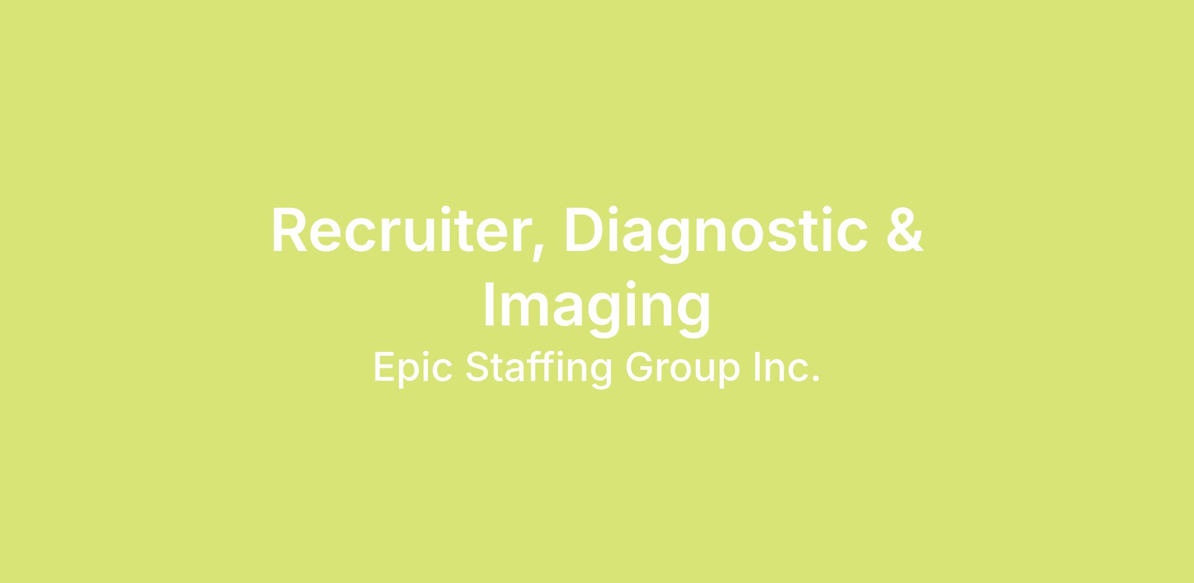 Epic Specialty Staffing, Diagnostic and Imaging Division, is looking for a Recruiter, Diagnostic & Imaging who will be responsible for managing the end-to-end recruitment process for Epic Staffing Group’s Specialty Strategic Business Unit, Diagnostic and Imaging division.