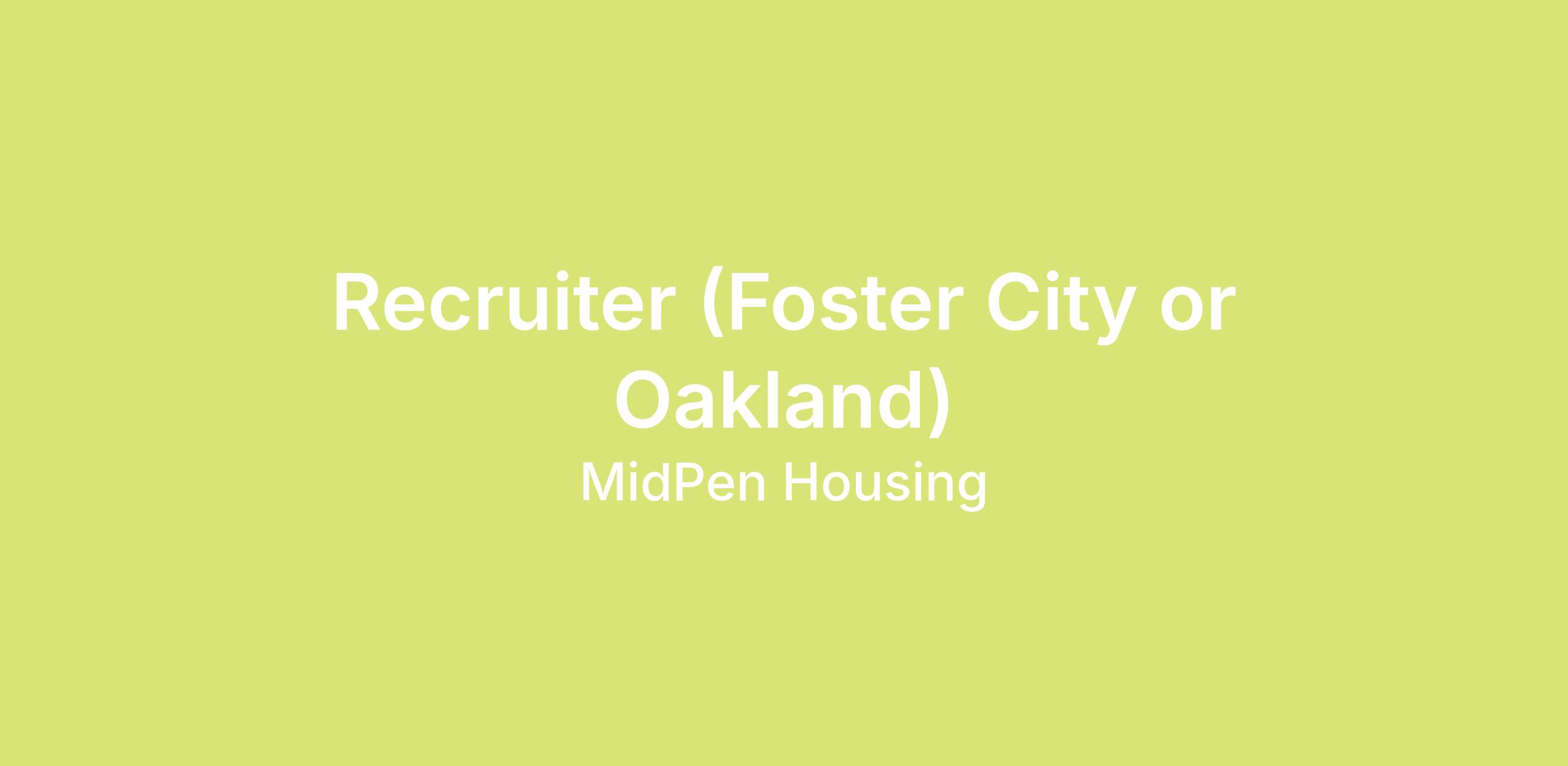 As a critical member of MidPen Housing’s Talent Acquisition team, the Recruiter supports our mission by ensuring we attract, engage, and hire exceptional talent across both corporate and frontline roles. Reporting to the Director of Talent Acquisition, this position manages full‑cycle recruiting for a broad mix of functions including property management, resident services, corporate operations, and technical roles while delivering a high‑touch, inclusive, and mission‑aligned candidate experience.
