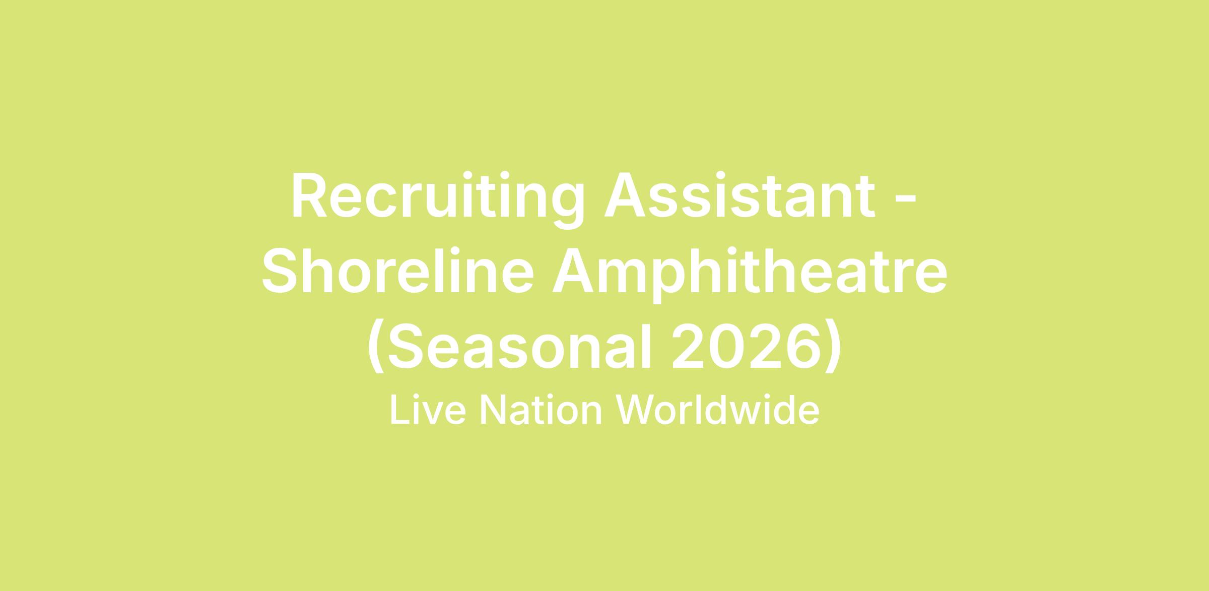 Shoreline Amphitheatre is seeking a Recruiting Assistant. This person will support hiring efforts by promoting opportunities in surrounding communities, sourcing candidates, and assisting with recruiting outreach. May also maintain employee records and provide general administrative support to the recruiting and HR team.