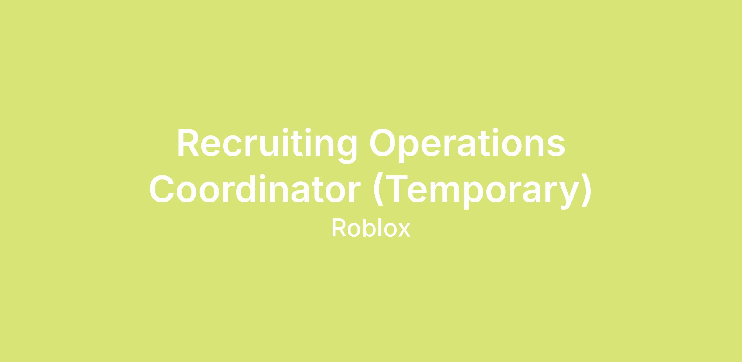 Our Recruiting Team plays a vital role in shaping exceptional teams at Roblox and driving our future growth. At the center of the recruiting experience is our Candidate Operations team, who handle everything from scheduling interviews, tracking candidate data and helping improve internal processes all while ensuring a positive experience for all candidates. We are looking for a motivated Recruiting Operations Coordinator to join our team and contribute to the next stage of Roblox's success! This position is a twelve-month short-term employment with the opportunity to be considered for extension and/or full-time employment pending performance and business needs. This is a hybrid position based in our San Mateo, CA offices.