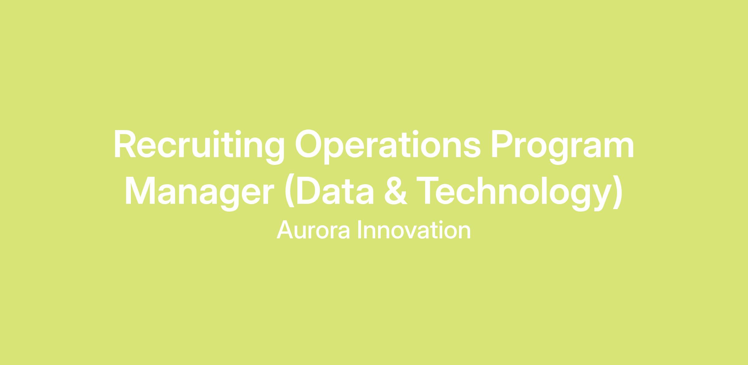 Aurora hires talented people with diverse backgrounds who are ready to help build a transportation ecosystem that will make our roads safer, get crucial goods where they need to go, and make mobility more efficient and accessible for all. The Talent Operations team is looking for a Senior Program Manager to join our Talent Acquisition (TA) team and drive efficiency and excellence across our tech stack and data infrastructure. This role is key to optimizing our tools, ensuring rigorous data integrity, automating workflows, and turning data into the insights that steer Aurora's hiring strategy.