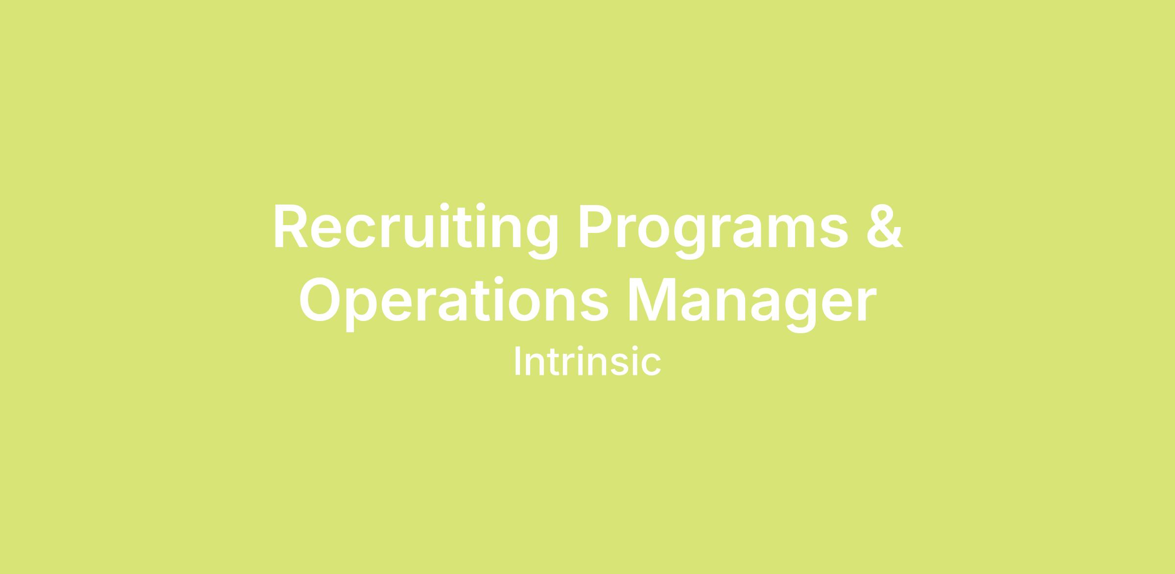 In this role, you'll lead the Recruiting Programs and Operations function, whose goal is to support and enable our Recruiting team to attract world-class talent. To accomplish this, you'll design, build, improve, and maintain the best-in-class infrastructure, processes, and programs needed to identify, assess, and hire the right talent. You will have an opportunity to define the strategy that will lead Intrinsic into the future and then execute on that strategy to help scale the business.