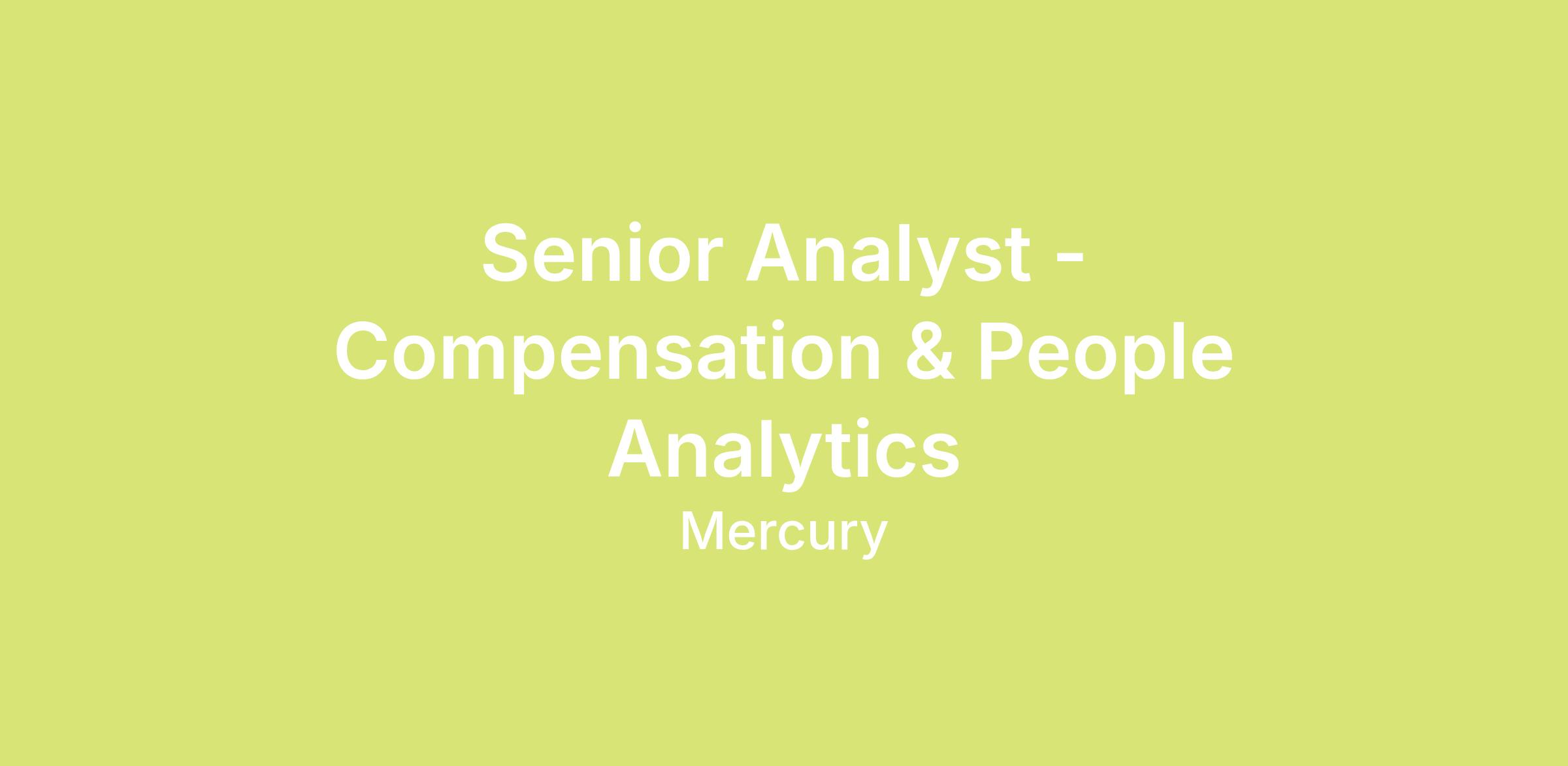 In this role, you’ll support the development and execution of Mercury’s compensation philosophy, helping ensure it remains competitive, equitable, and scalable. You will partner with senior leaders to ensure Mercury’s compensation practices support business objectives. By maintaining industry knowledge, conducting competitive analyses, and recommending updates to remain in line with market trends, you push senior leaders to think strategically about compensation decisions. Alongside this, you’ll leverage data to generate insights on our workforce, helping inform decisions across compensation and the broader People team.