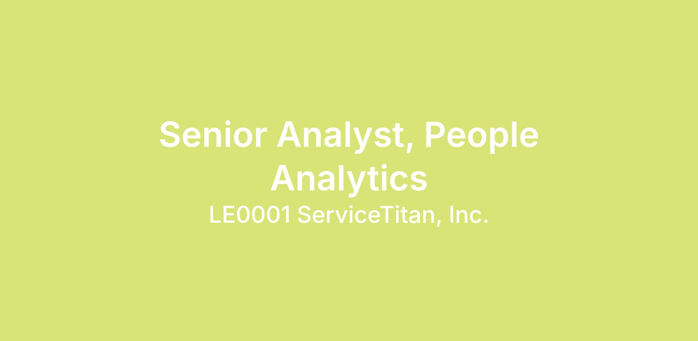 ServiceTitan is seeking an experienced analyst to join the People Insights & Analytics (PIA) team as we build the first end-to-end solution to transform the trades. This Senior Analyst of People Analytics role will serve as the operational backbone of PIA’s analytics platform, owning Visier administration, essential content development, data pipeline support, and systematic data validation. This role is critical for maintaining a clean, trustworthy, and scalable analytics environment that enables self-service insights across the full employee lifecycle. Working closely with the PIA team and cross-functional partners in People Technology and Data Engineering, this person will ensure that our analytics products are reliable, well-organized, and built for the people who use them.