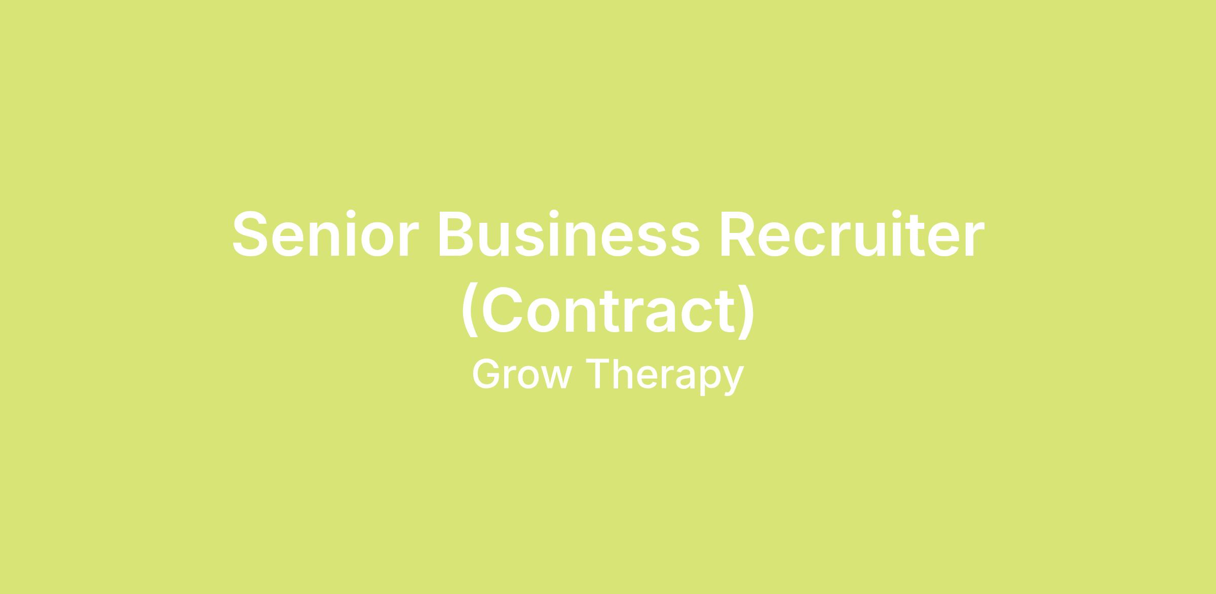 We’re seeking a seasoned Senior Business Recruiter (Contract) to drive hiring for our Operations org at Grow Therapy. You will own a high volume of requisitions and will partner closely with hiring managers to deeply understand team priorities, role requirements, and long-term business goals. In this role, you will primarily support Operations hiring across Customer Operations and Insurance Operations. This is a contract role with the potential for full-time employment dependent on business need and recruiter performance.