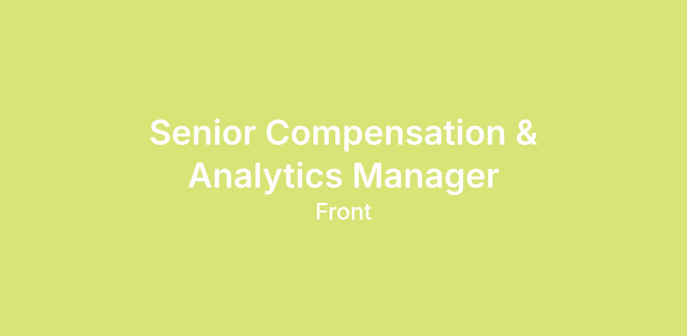 We’re hiring a Senior Compensation & Analytics Manager to bring rigor, structure, and strong analytical thinking to how we design and run compensation and people analytics at Front. This is a high impact role with meaningful exposure to senior leadership and the Board.