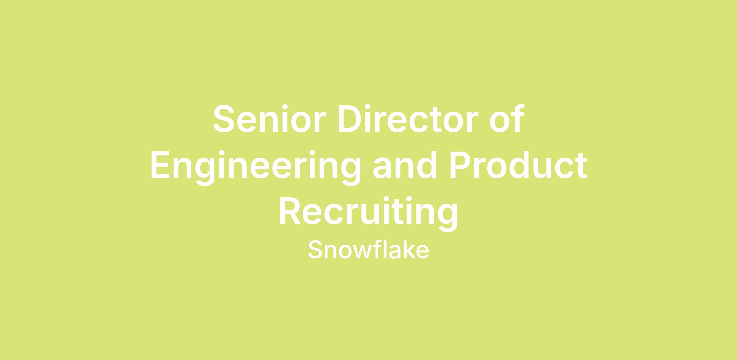 As the Senior Director of Engineering and Product Recruiting at Snowflake, you will be a key architect of our technical growth, reporting directly to the Chief People Officer. This role involves partnering with leadership to scale the technical organization, shape a team of talented recruiters and sourcers, and serve as a strategic thought partner to Engineering and Product leadership. This is a high-velocity growth story where we move fast and deliver talent even faster.