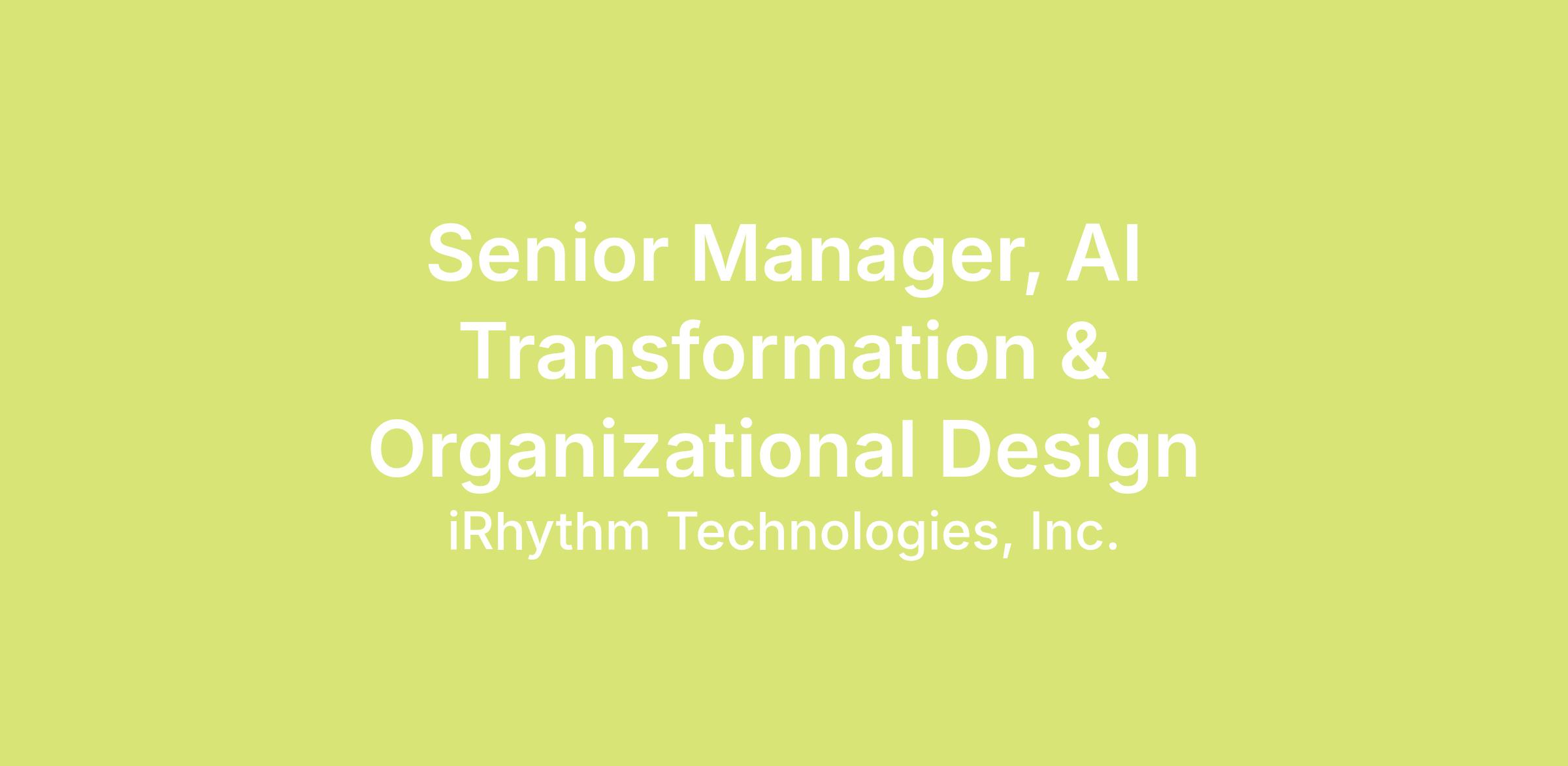 At iRhythm, you’ll have the opportunity to grow your skills and your career while impacting the lives of people around the world. iRhythm is shaping a future where everyone, everywhere can access the best possible cardiac health solutions. Every day, we collaborate, create, and constantly reimagine what’s possible. We think big and move fast, driven by our commitment to put patients first and improve lives. We need builders like you. Curious and innovative problem solvers looking for the chance to meaningfully shape the future of cardiac health, our company, and your career