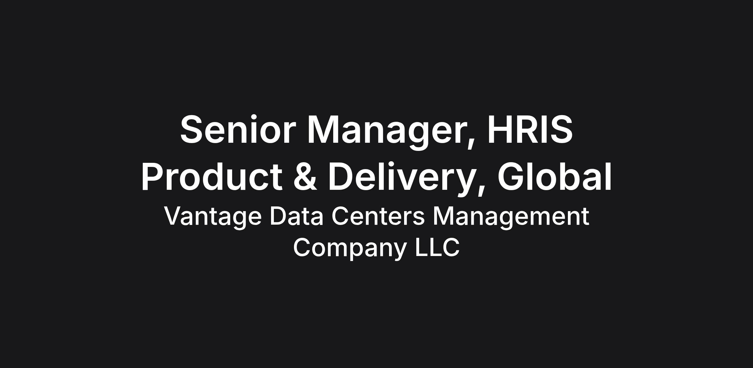 Vantage Data Centers is seeking a detail-oriented, hands-on Manager and Workday functional leader to join our People & Culture team. Reporting to the Senior Director, People Operations, you will support Workday/HRIS strategy, delivery, driving improvements, and partnering with stakeholders to enhance the employee experience. Your responsibilities also include leading a team of project managers and HRIS professionals responsible for Workday delivery and HR technology programs.
