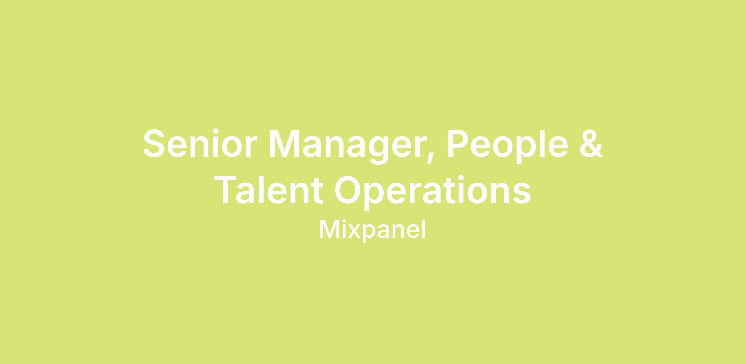 The Senior Manager, People & Talent Operations is a key operational leader on the People & Culture team, responsible for the systems, tools, processes, and programs that power Mixpanel's people function end-to-end. Reporting to the VP of People, this role owns our HR and talent technology ecosystem, global benefits administration, compensation operations, headcount planning, and people analytics. You will lead and develop a team of three, partnering closely with Finance, Recruiting, and People Business Partners to drive operational excellence and a seamless employee experience at every stage of the employee lifecycle. This role is hybrid in San Francisco, with remote candidates also considered.