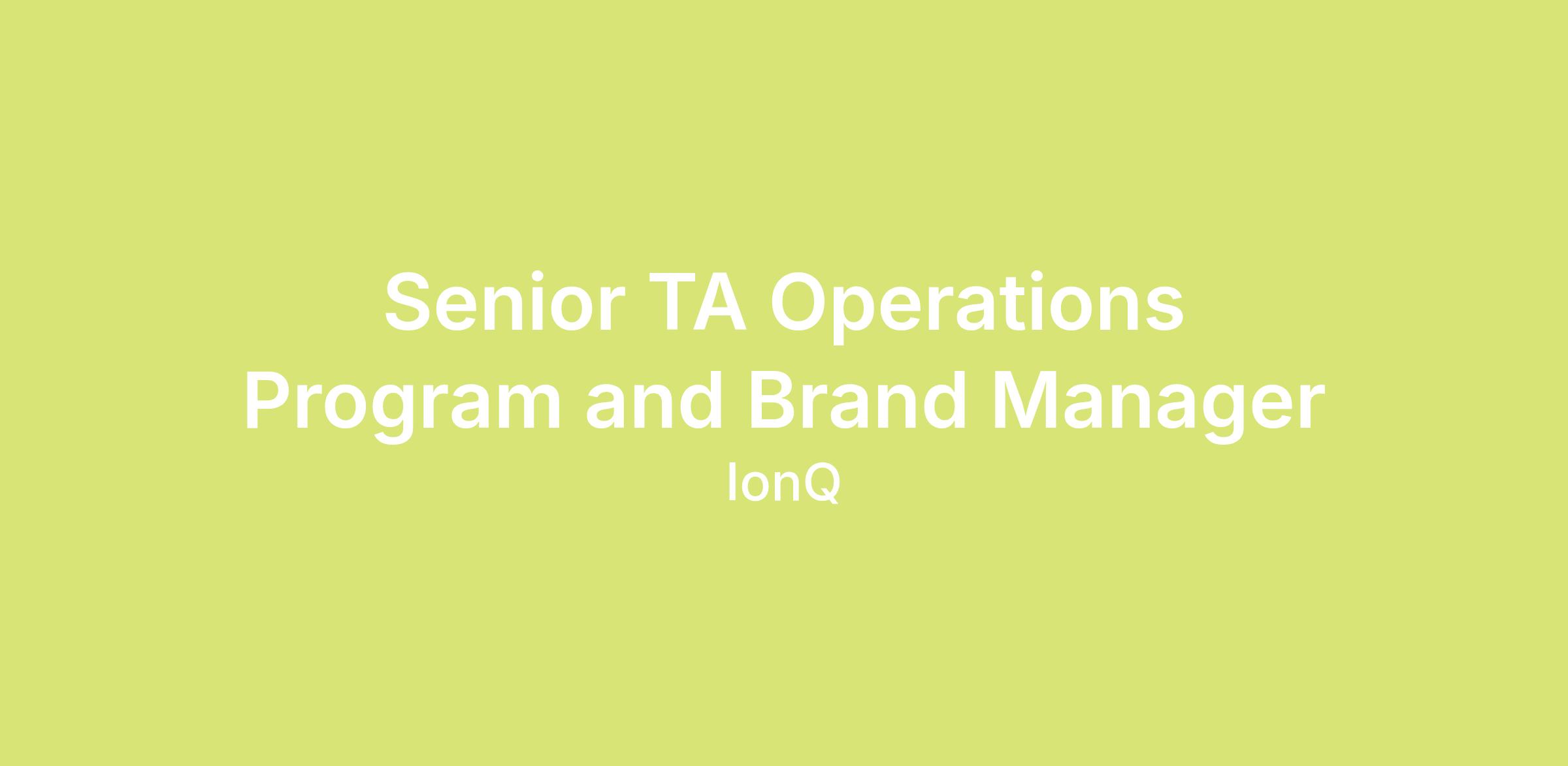 We are seeking a Senior TA Operations Program and Brand Manager to join the Global TA Operations team, to drive our TA Programs, Enablement, and Employer Brand and Listening. As the Senior TA Operations Program and Brand Manager, you’ll be part of a cross-functional team whose mission is to lead IonQ on its journey to build the world’s best quantum computers to solve the world’s most complex problems.