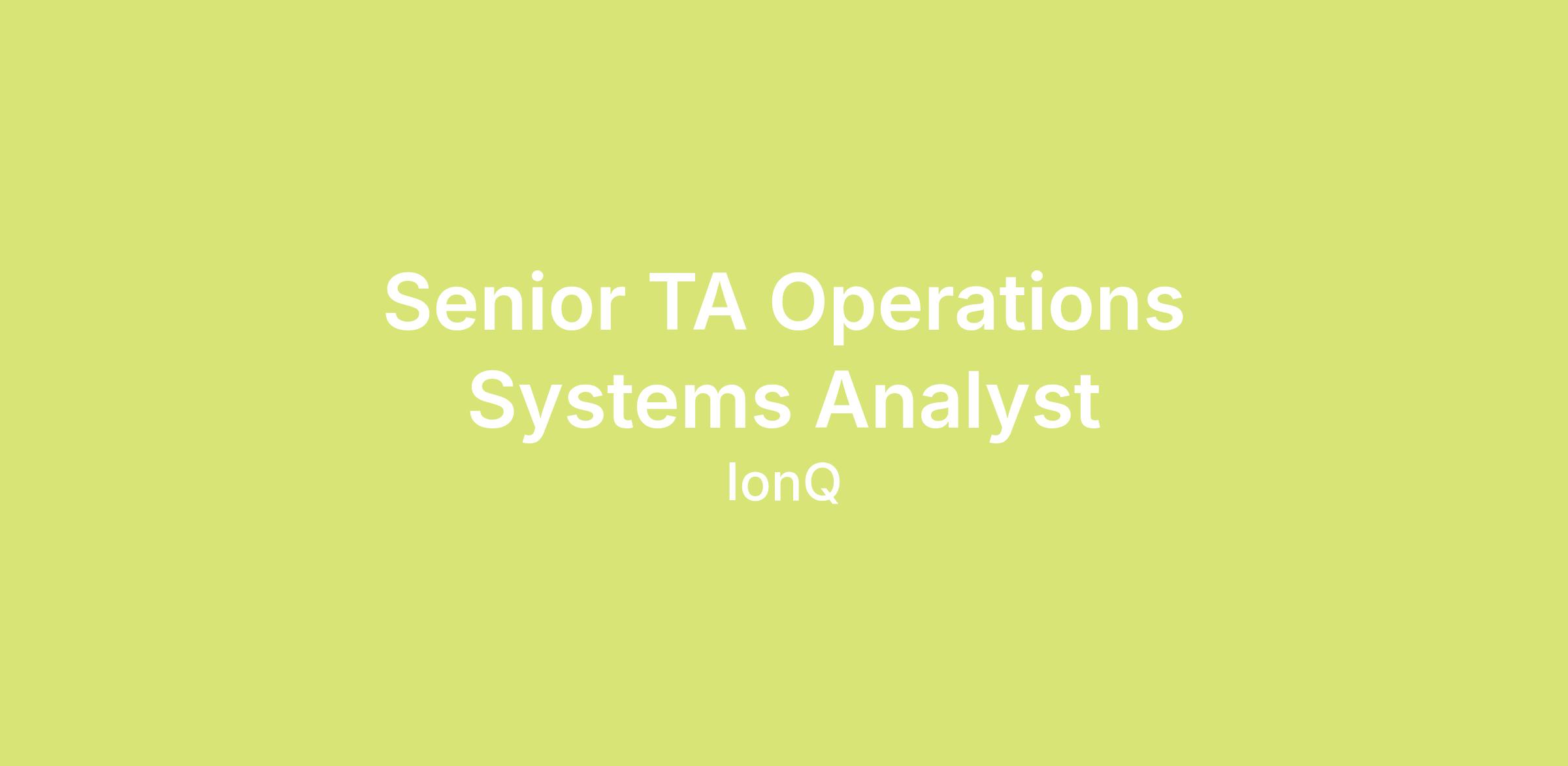 We are seeking a Senior TA Operations Systems Analyst to join the Global TA Operations team, to drive our TA techstack system configuration, audits, reporting and forecasting. As the Senior TA Operations System Analyst, you’ll be part of a cross-functional team whose mission is to lead IonQ on its journey to build the world’s best quantum computers to solve the world’s most complex problems.