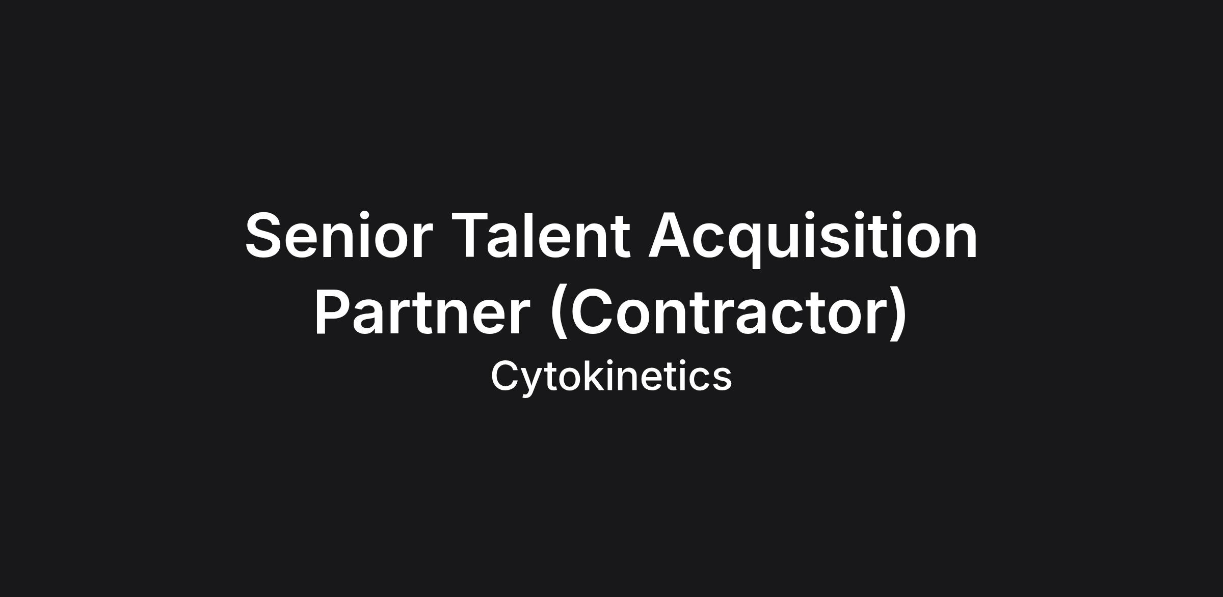 Cytokinetics is seeking an experienced Senior Talent Acquisition Partner (Contractor) to join our Global Talent Acquisition team. This role will play a critical part in supporting G&A and other business functions in the United States.