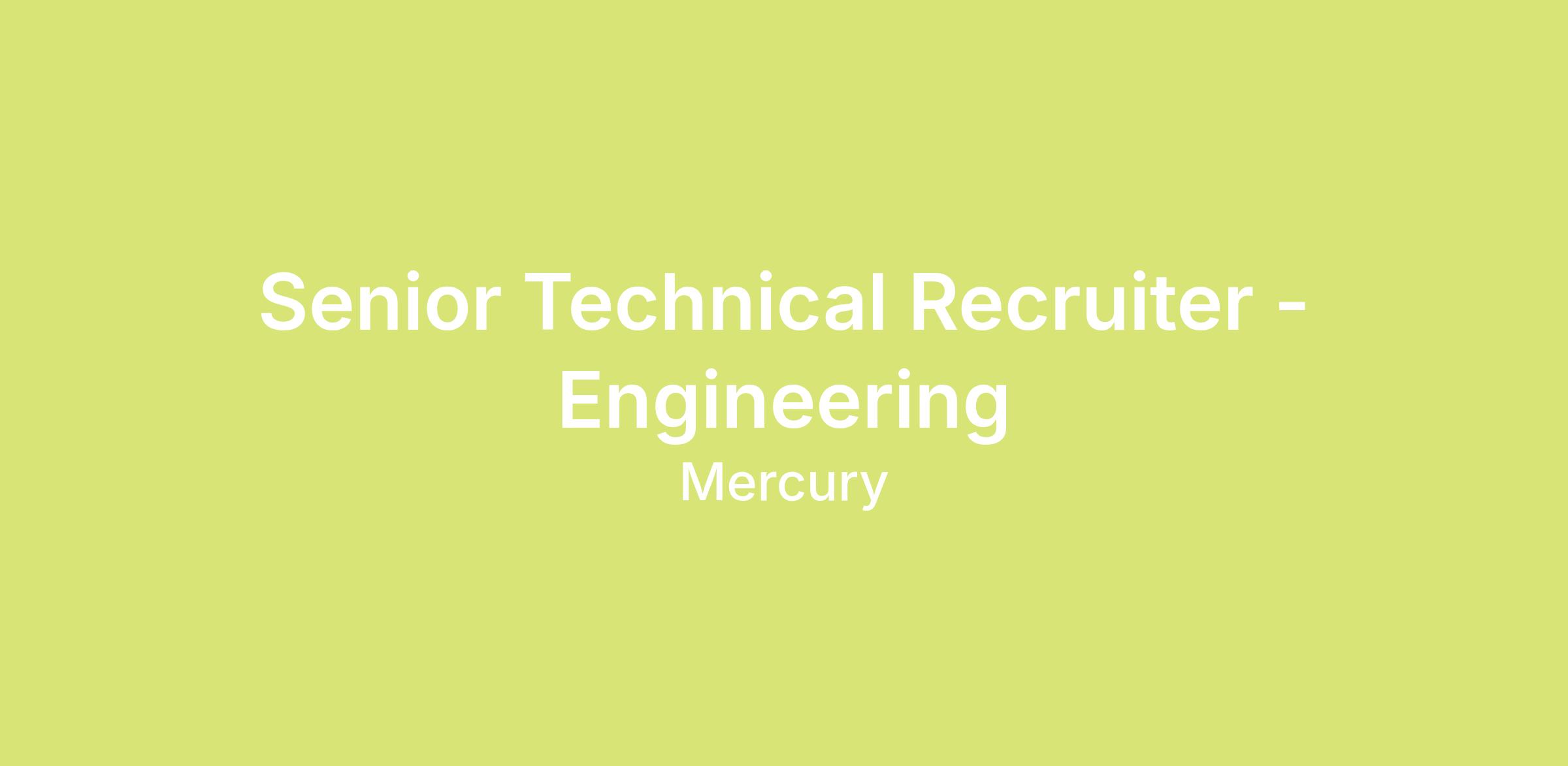 Mercury is revolutionizing finance for startups by building a complete, user-friendly banking* stack. This requires scaling exceptional engineering teams, so we’re looking to add a Technical Recruiter to help shape how we hire and grow. In this role, you’ll lead full-cycle recruiting for engineering roles, using a combination of strategic sourcing, market insight, and strong partnership with hiring managers to build high-impact teams.