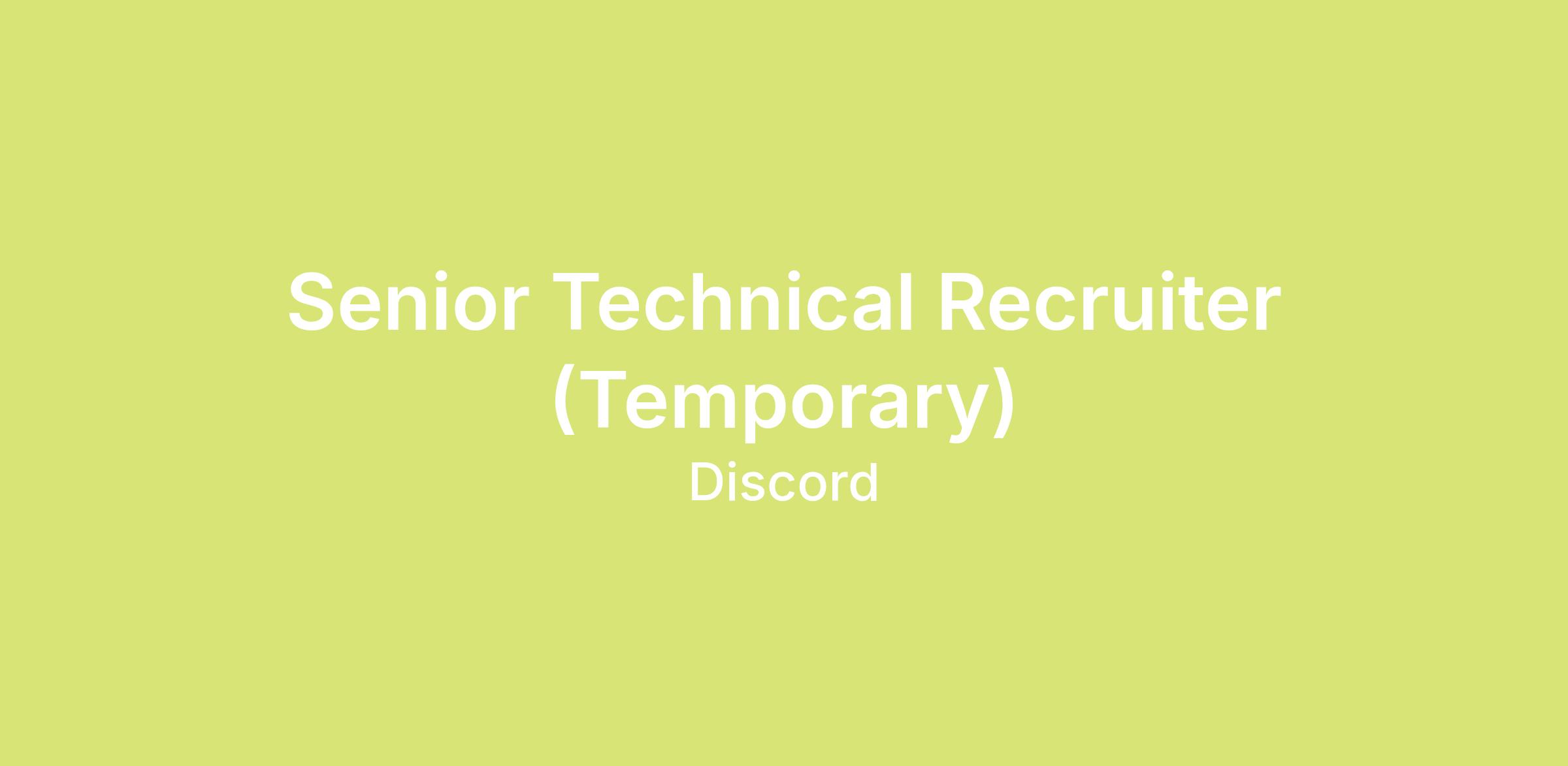Working at Discord is like working with an exciting and motivated family. Finding the right people to add to our unique mix is a difficult endeavor, so we're looking for a Senior Technical Recruiter to join our recruiting team and help us maintain a smooth and positive experience for remarkable candidates.
