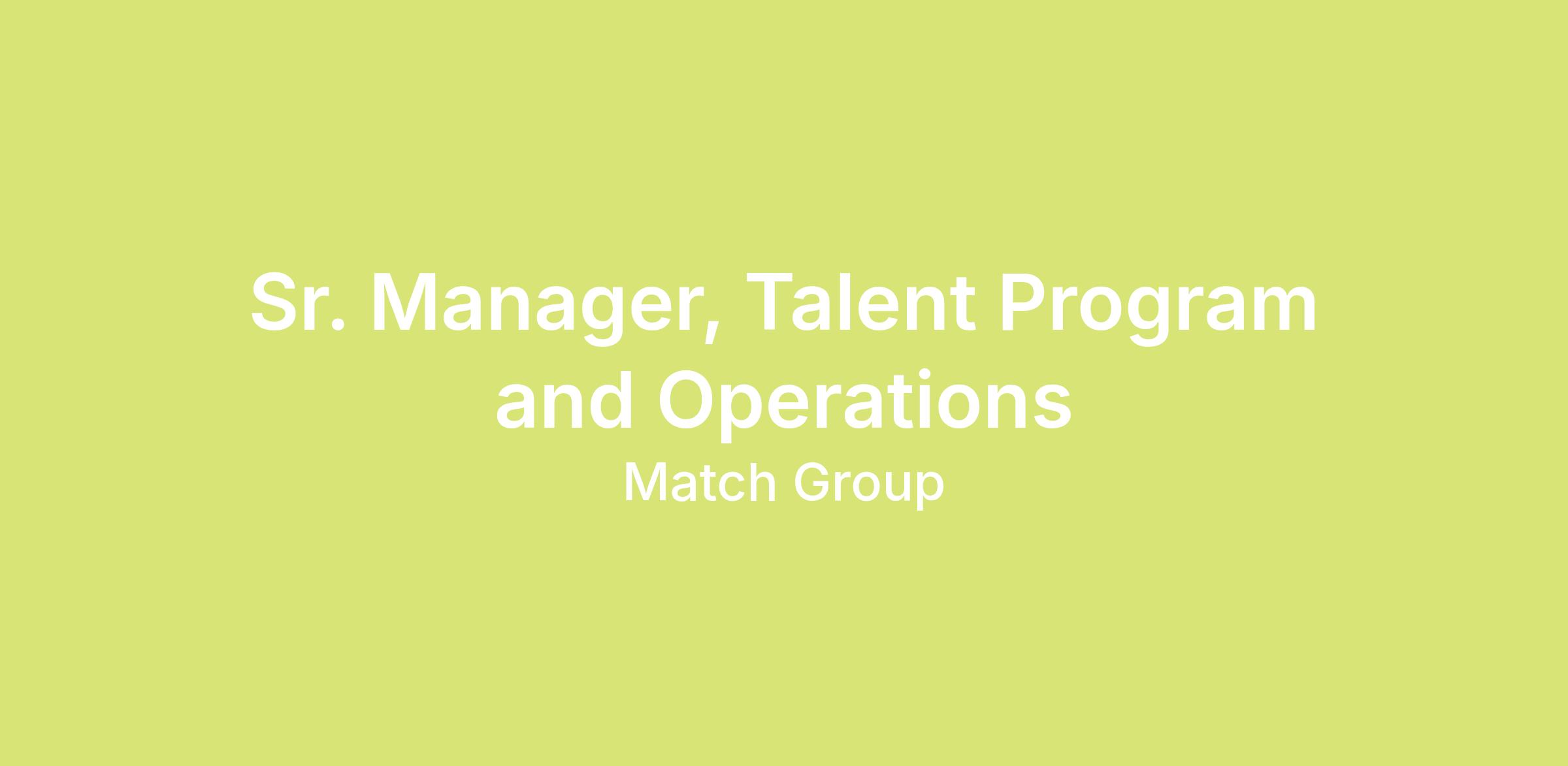 We’re seeking a strategic and operational Senior Manager to build, scale, and run the Talent Acquisition operating system across Match Group. This role oversees talent coordination and operations, tools and systems, reporting, and supports capacity planning. They will develop scalable processes, build core programs, and deliver insights that enable recruiters, leaders, and cross-functional partners to make informed decisions.