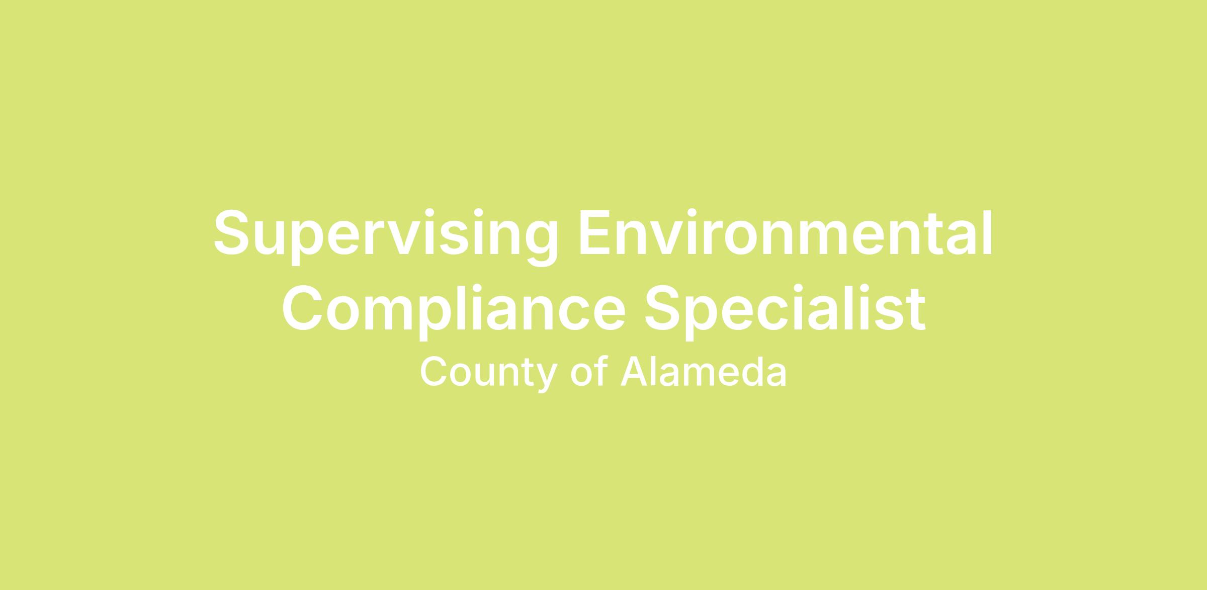 Experience: The equivalent of two (2) years of full-time experience as an Associate Environmental Compliance Specialist in Alameda County classified service.