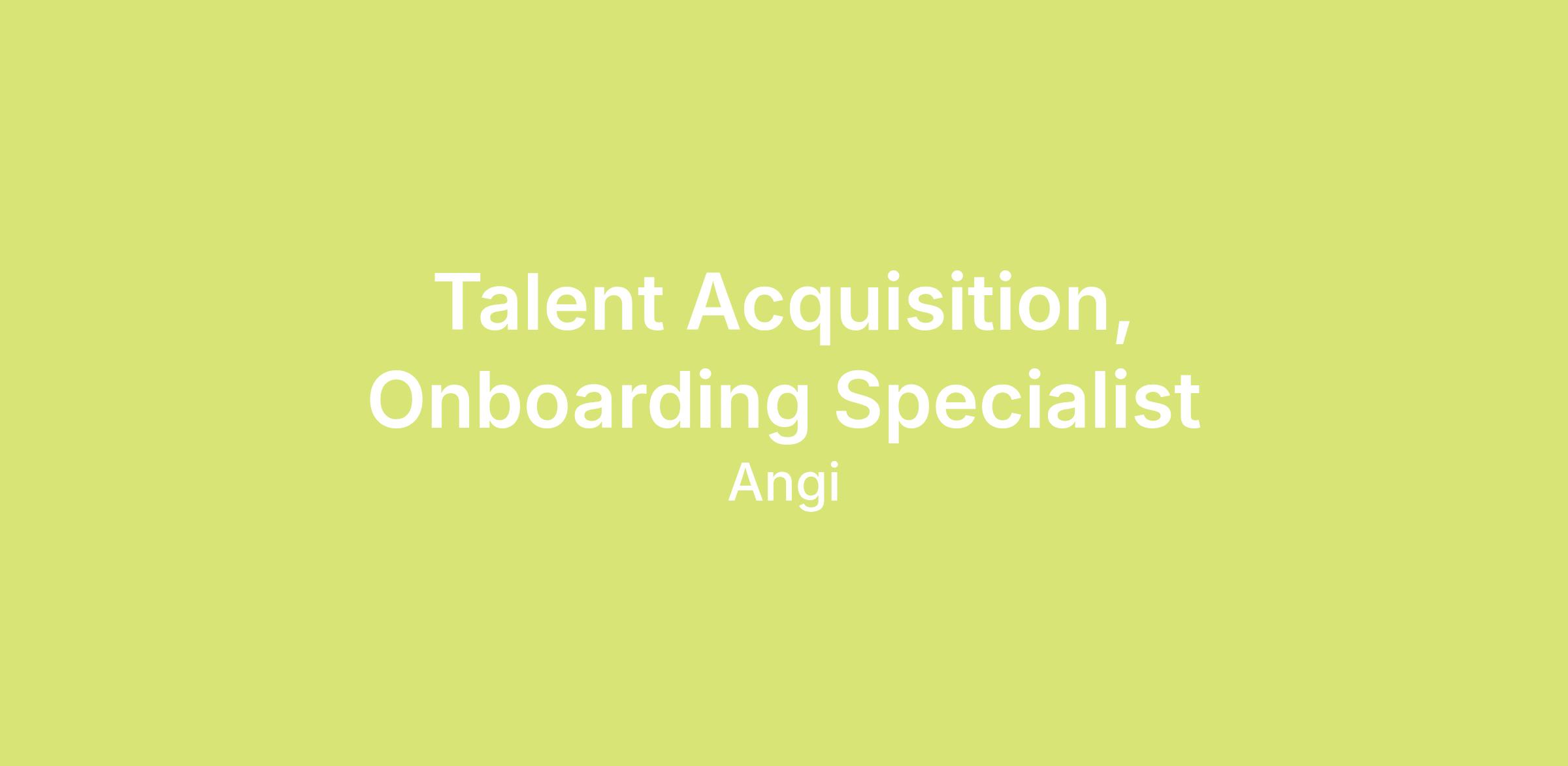We’re looking to add a detail-oriented Talent Acquisition, Onboarding Specialist to our team. This person will be responsible for keeping our new hire onboarding process running smoothly and efficiently, all while promoting and maintaining the Angi brand. Our onboarding specialists are the face of the company, so we’re looking for a passionate brand ambassador who can woo candidates, build great relationships, and provide top-notch customer service to everyone we've hired who is preparing to start their career at Angi. The ideal candidate will be customer service focused with the ability to troubleshoot unique and difficult situations that arise.