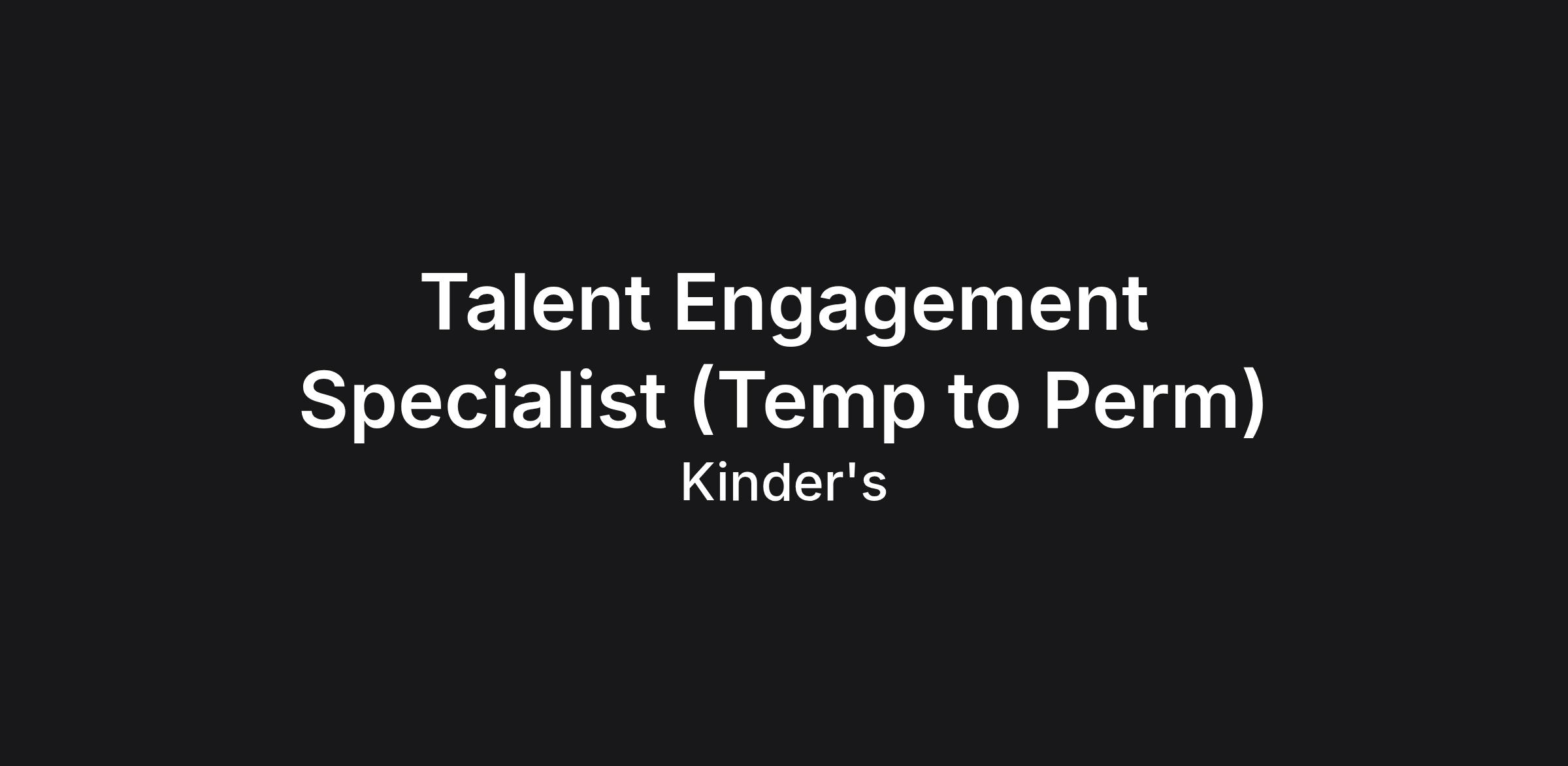 This strategic Talent Engagement Specialist plays a pivotal role in driving seamless talent operations while contributing to Kinder’s long-term People & Culture strategy. This role requires a balance of tactical excellence - ensuring every detail of the recruiting and onboarding experience is executed flawlessly - with the vision to enhance processes, elevate the candidate experience, and support strategic initiatives that bring Kinder’s mission and culture to all our candidates who are exploring our company.