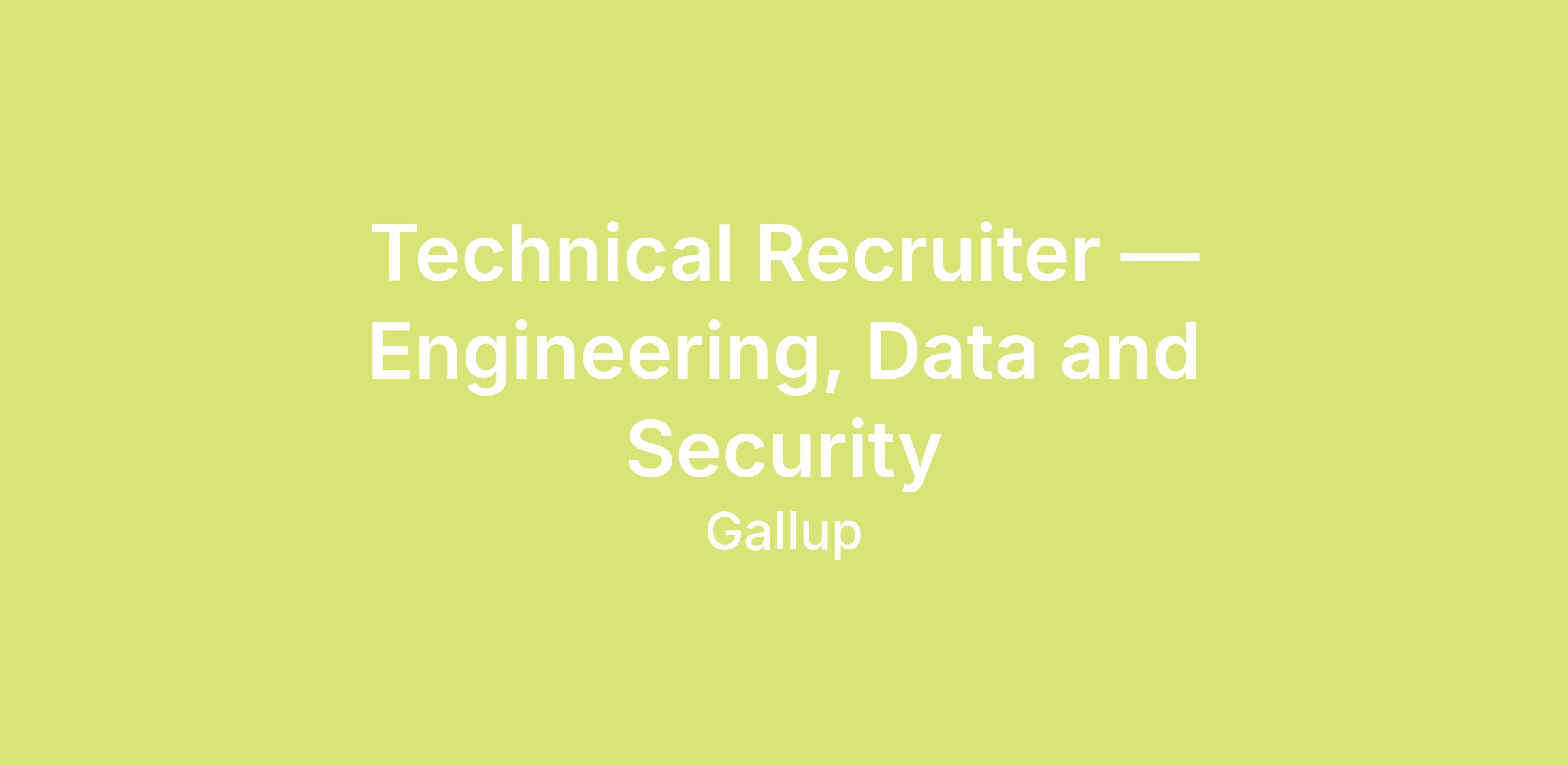 As a technical recruiter, you will partner with senior technology leaders to attract and hire exceptional engineers, data scientists and security professionals. You will set a high bar and engage top candidates who are inspired to advance Gallup technology that enables leaders around the world to measure and improve the human experience.