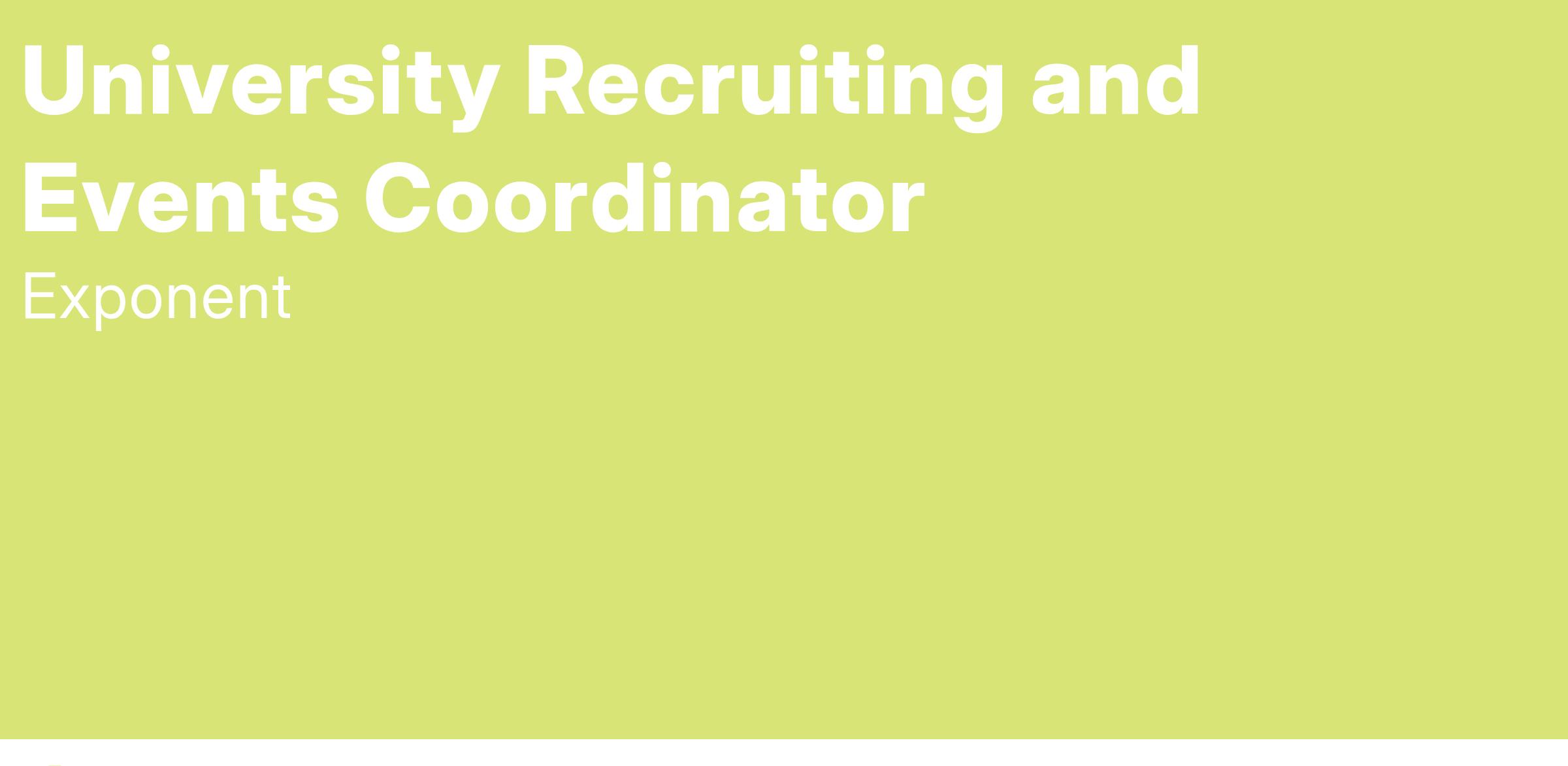 We are currently seeking a University Recruiting and Events Coordinator to join our Human Resources team. This position is located in our Menlo Park, CA office and requires regular time in the office. In this position, you will play a critical role in our efforts to identify and recruit talented Ph.D. level engineers and scientists for consulting positions within Exponent, as well as non-consulting roles supporting our various teams. This role offers a unique opportunity to gain exposure to many areas of the university recruiting, talent acquisition, and HR worlds. Some of your core job responsibilities will be supporting our many recruiting events, scheduling interviews, owning the reporting of our key metrics, preparing presentations for corporate meetings, and leading recruiting efforts for some of our non-consulting roles. You will play an integral role in facilitating company growth within an international firm. This is an excellent opportunity to join a collaborative team that values professional development and works to support a world-class candidate experience.