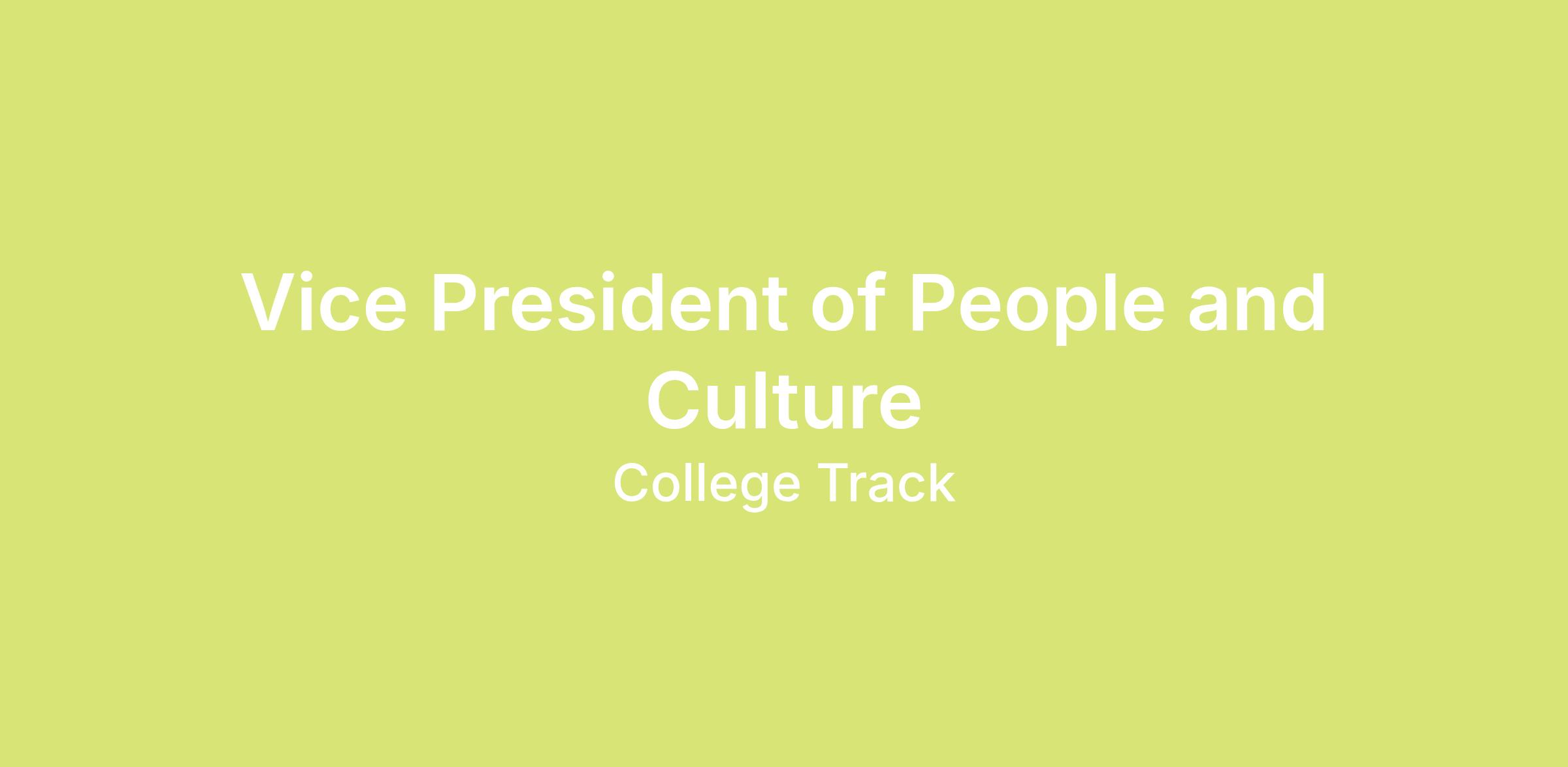College Track is seeking a Vice President of People & Culture to serve as the chief architect of our human capital ecosystem. We are at a pivotal inflection point, transitioning from a foundation of thoughtful design to a scaled, future-ready organization. We are seeking a visionary leader who can move beyond the status quo to evolve our existing people strategy into a high-impact engine for organizational growth.